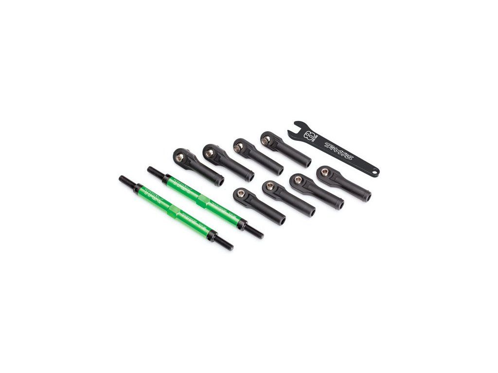 Zeleně eloxované ojničky řízení Traxxas 8638G s koncovkami. Délka na střed ok koncovek je 144 mm, vyrobeno z vysokopevnostní hliníkové slitiny 7075-T6. Pro snížení hmotnosti je vnitřní část spojovaček dutá. Baleni obsahuje 2 kusy spojovaček, 8 koncovek s kulovými čepy a klíč.