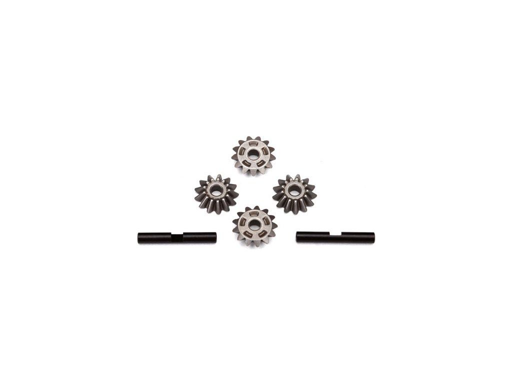Traxxas ozubená kola diferenciálu (4 ks) pro centrální diferenciál 6780, Drag Slash diferenciál a pro centrální diferenciály do modelů 1:12. Součástí jsou vnitřní hřídele ozubených kol (2 ks).