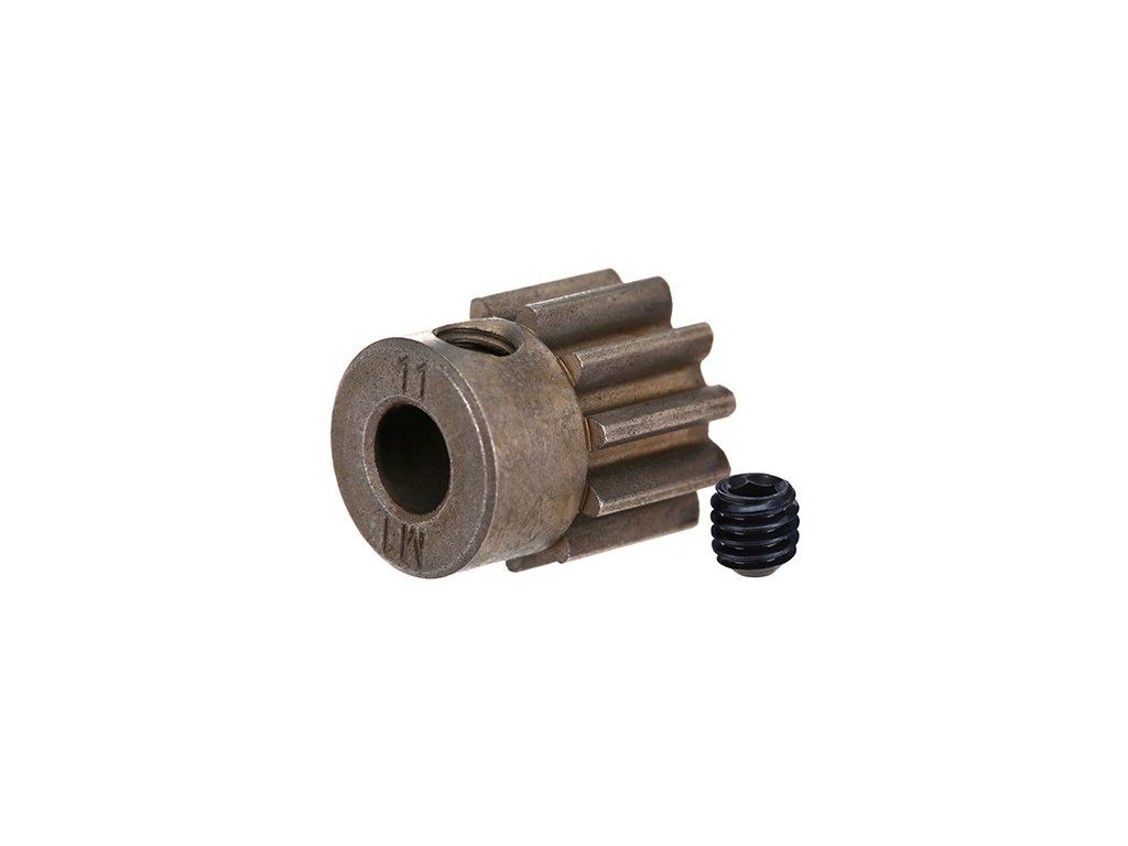 Traxxas pastorek na hřídel 5 mm s 11 zuby a modulem ozubení 1 mm pro RC modely aut. Vyrobeno z sintrované oceli. Součástí balení je červík.