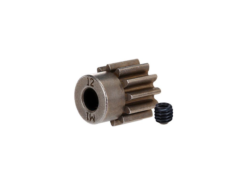Traxxas pastorek na hřídel 5 mm s 12 zuby a modulem ozubení 1 mm pro RC modely aut. Vyrobeno z sintrované oceli. Součástí balení je červík.