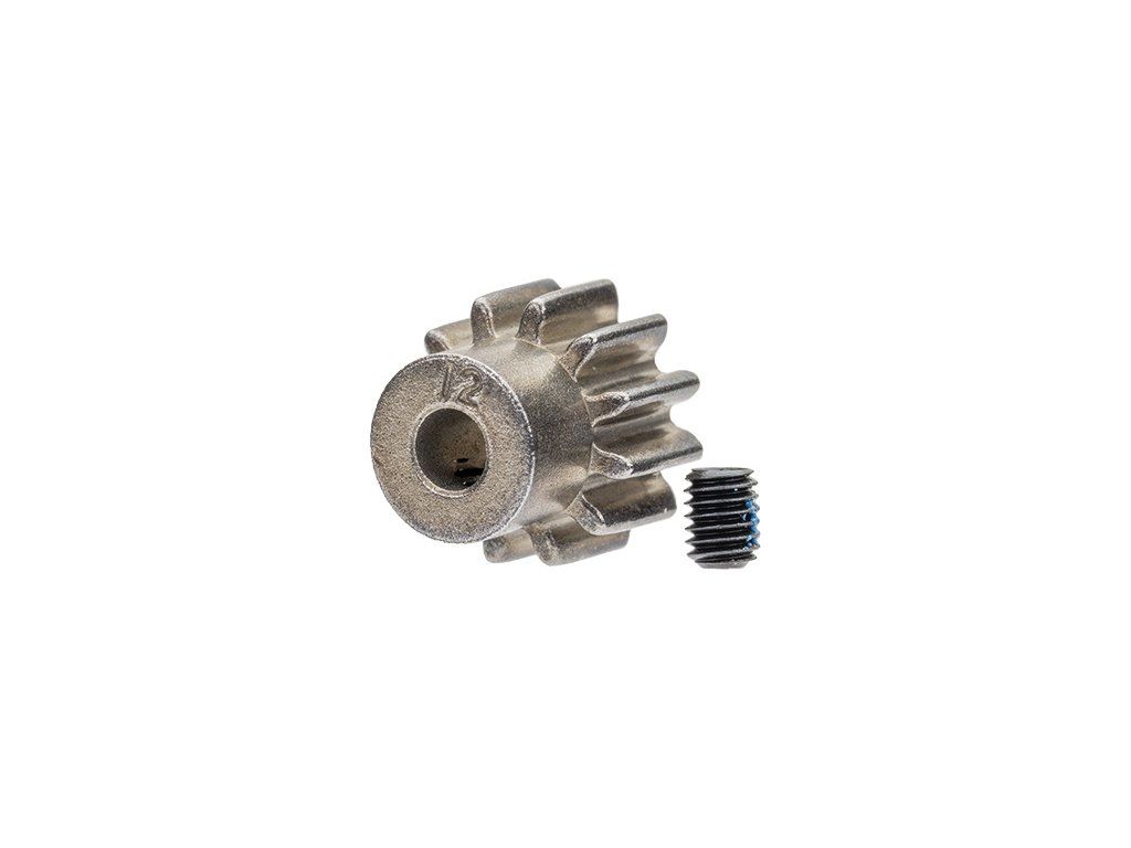 Traxxas pastorek na hřídel 3 mm s 12 zuby a modulem ozubení 32DP pro RC modely aut. Vyrobeno z sintrované oceli. Součástí balení je stavěcí šroub.