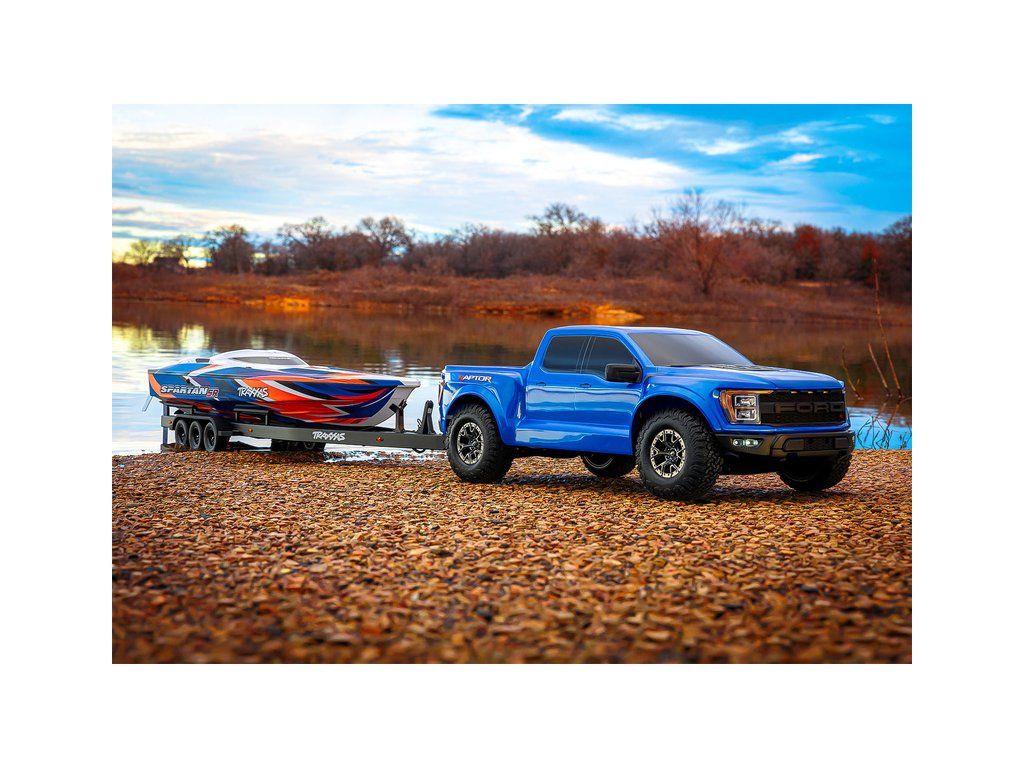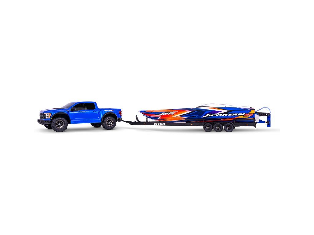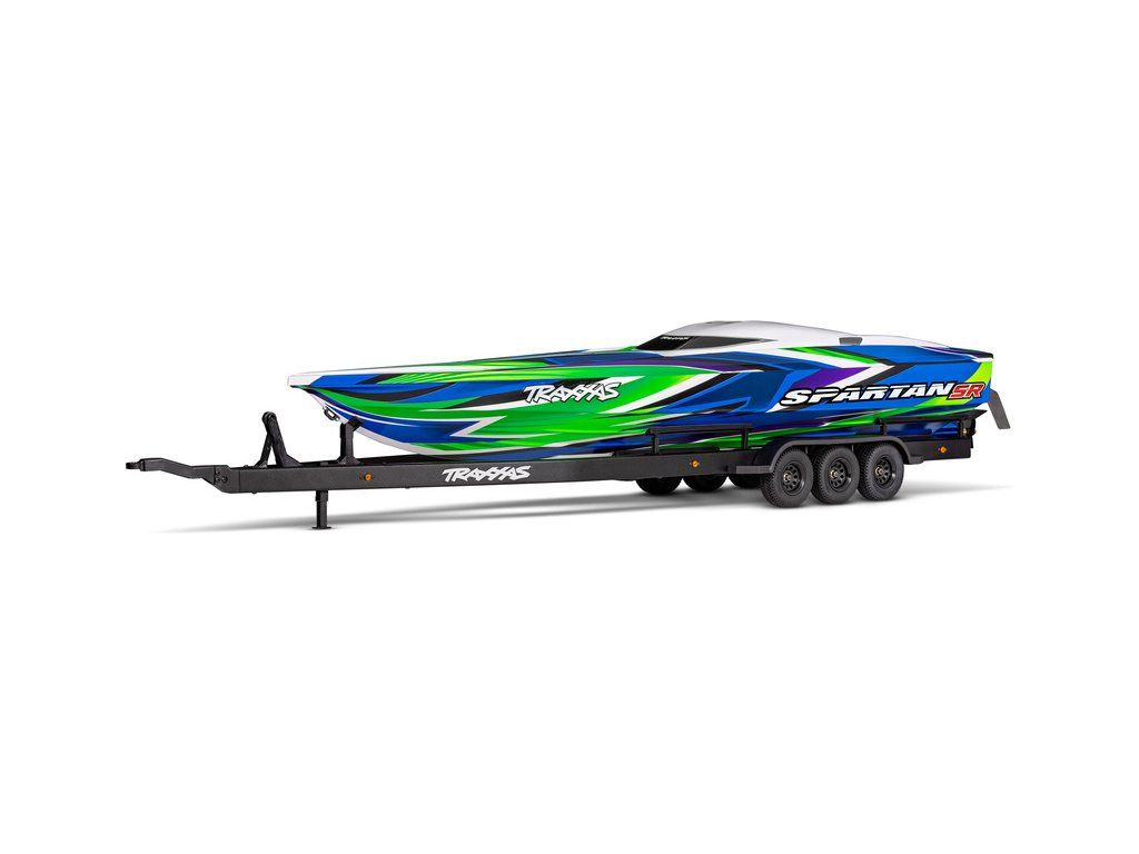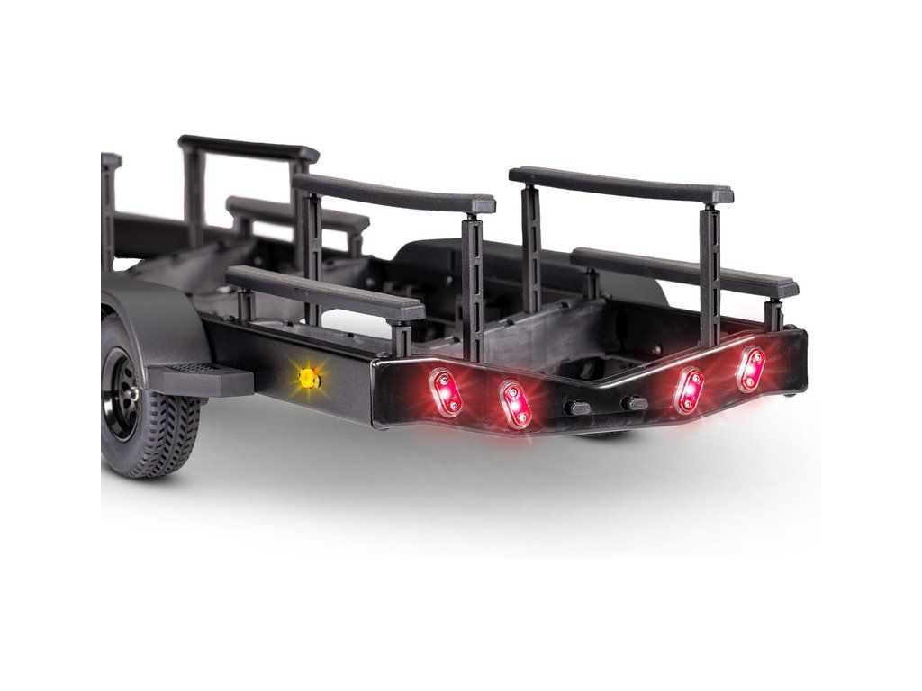 Přepravujte svůj člun Traxxas Spartan/DCB M41 k vodě stylově s detailním třínápravovým přívěsem. Přívěs obsahuje hliníkový rám, skládací přední stojku, podpěry na korbě s nastavitelnou výškou, gumové pneumatiky a elastické úchyty. Přívěs lze táhnout za modely TRX-4/TRX-6 a Ford Raptor R.