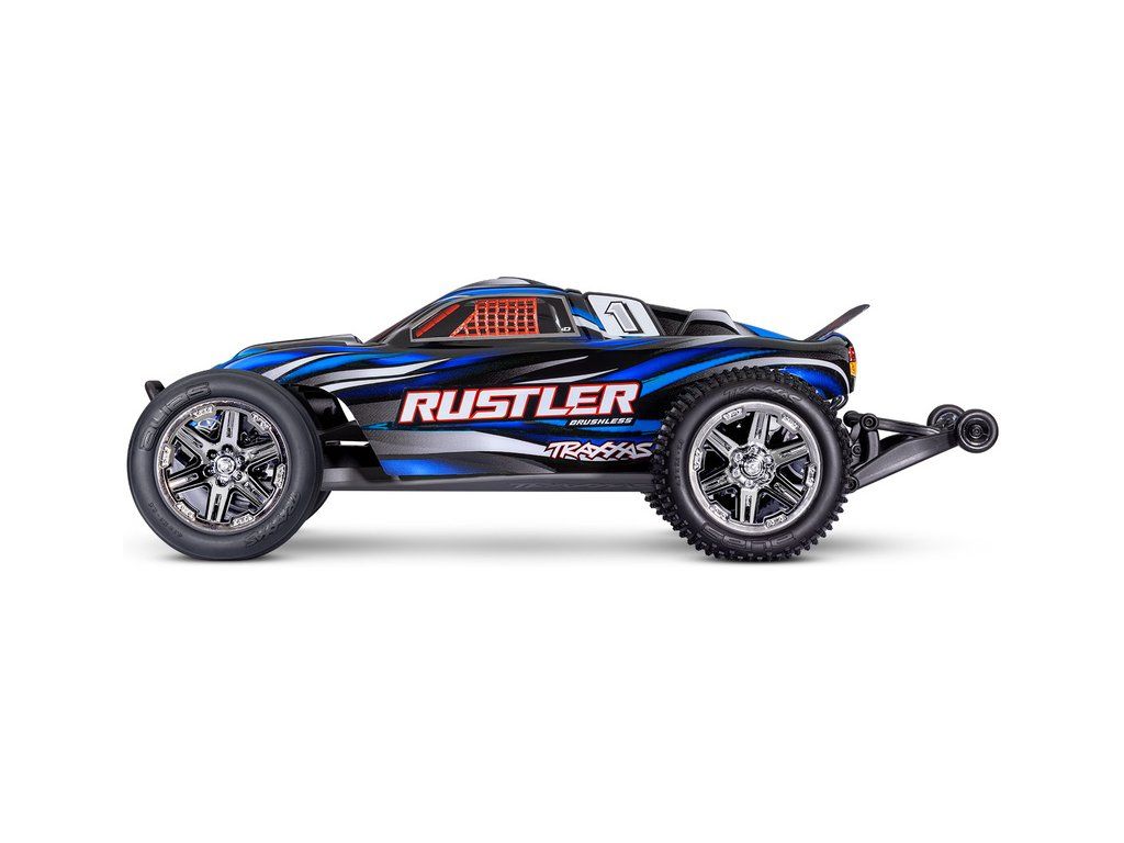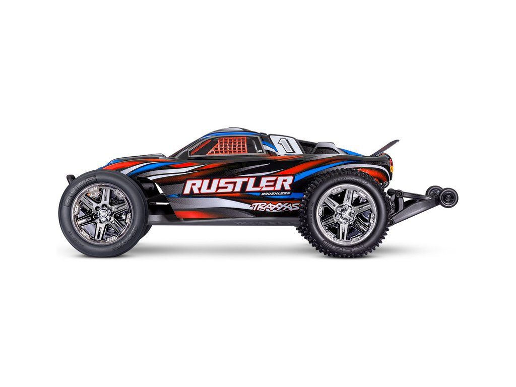 RC model auta Rustler v měřítku 1:10, typu Truggy. Pohání jej výkonný střídavý motor s regulátorem BL-2S. Model jezdí až 64 km/h! Obsahuje bezsponkovou karoserii, komponenty pro vysokou odolnost - Extreme Heavy Duty a náhon 2WD. RC souprava TQ 2.4 GHz.