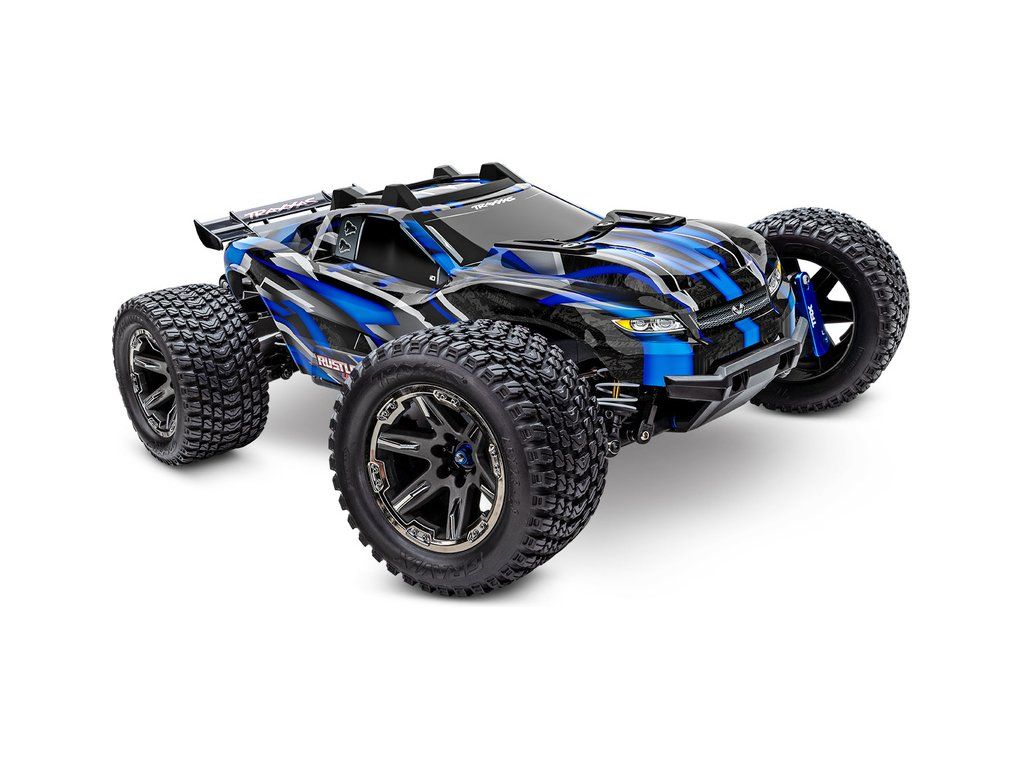 RC model auta Traxxas Rustler 4x4 ve vrcholné verzi Ultimate VXL s výkonným střídavým motor Velineon, stabilizací TSM, řadou hliníkových dílů, výkonnějším servem řízení, bezsponkovou karosérii, instalovanými telemetrickými senzory a RC soupravou TQi s Bluetooth modulem. Rychlost až 104 km/h.