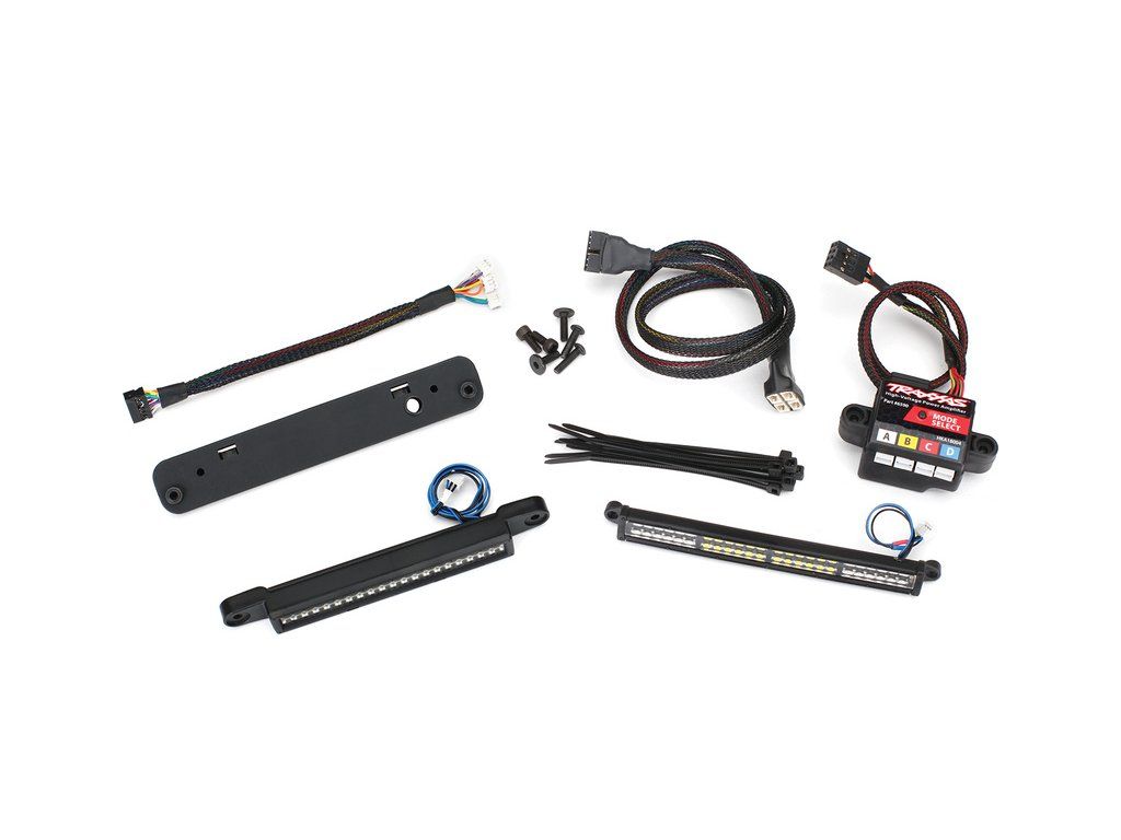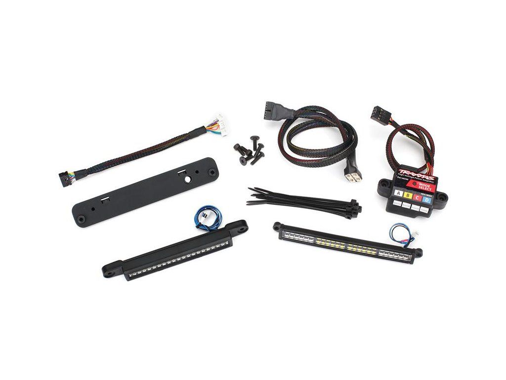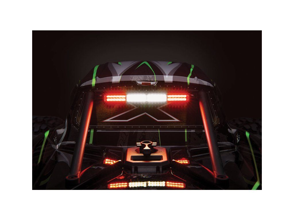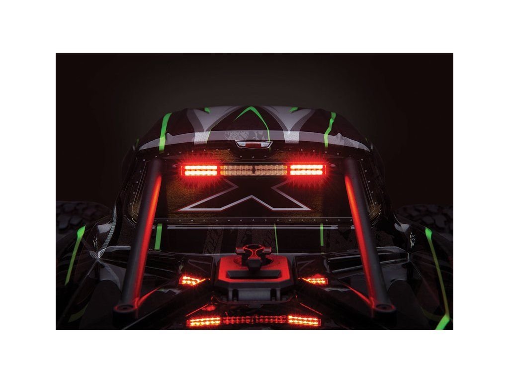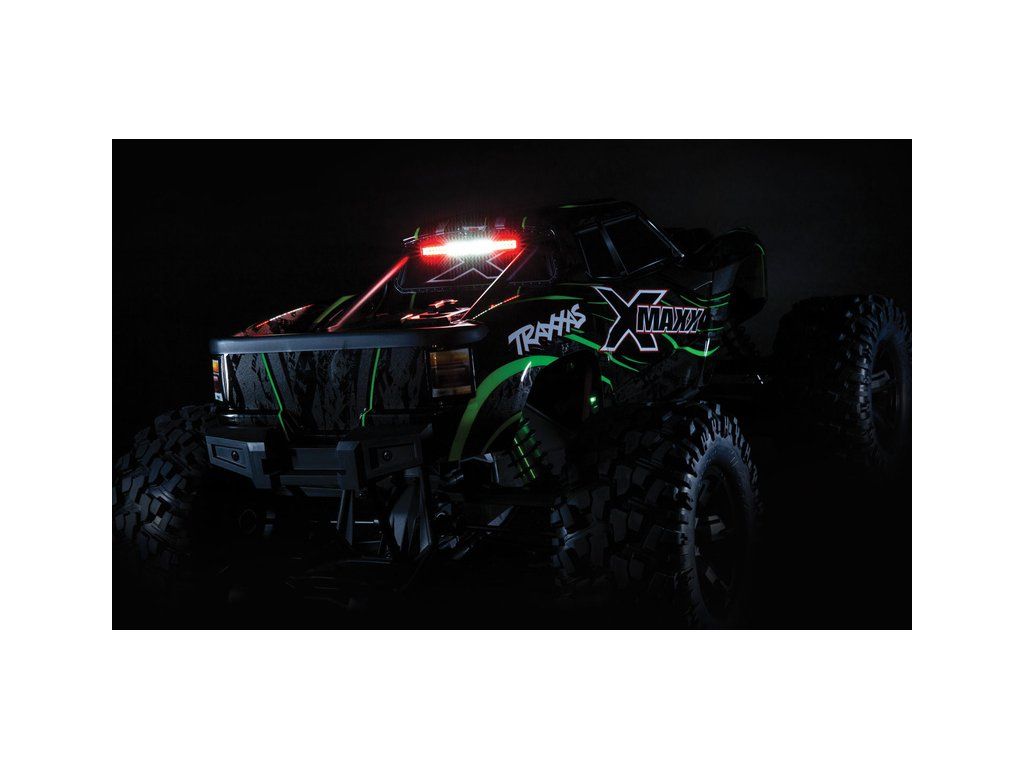 Traxxas sada LED osvětlení kompletní: pro RC model auta X-Maxx / XRT / X-Monster. Přední světelná LED lišta do nárazníku, zadní multifunkční brzdová lišta, napájecí modul pro připojení k regulátoru VXL-8S, montážní příslušenství. Inteligentní ovládání umožňuje nastavení světel přes aplikaci Traxxas Link.