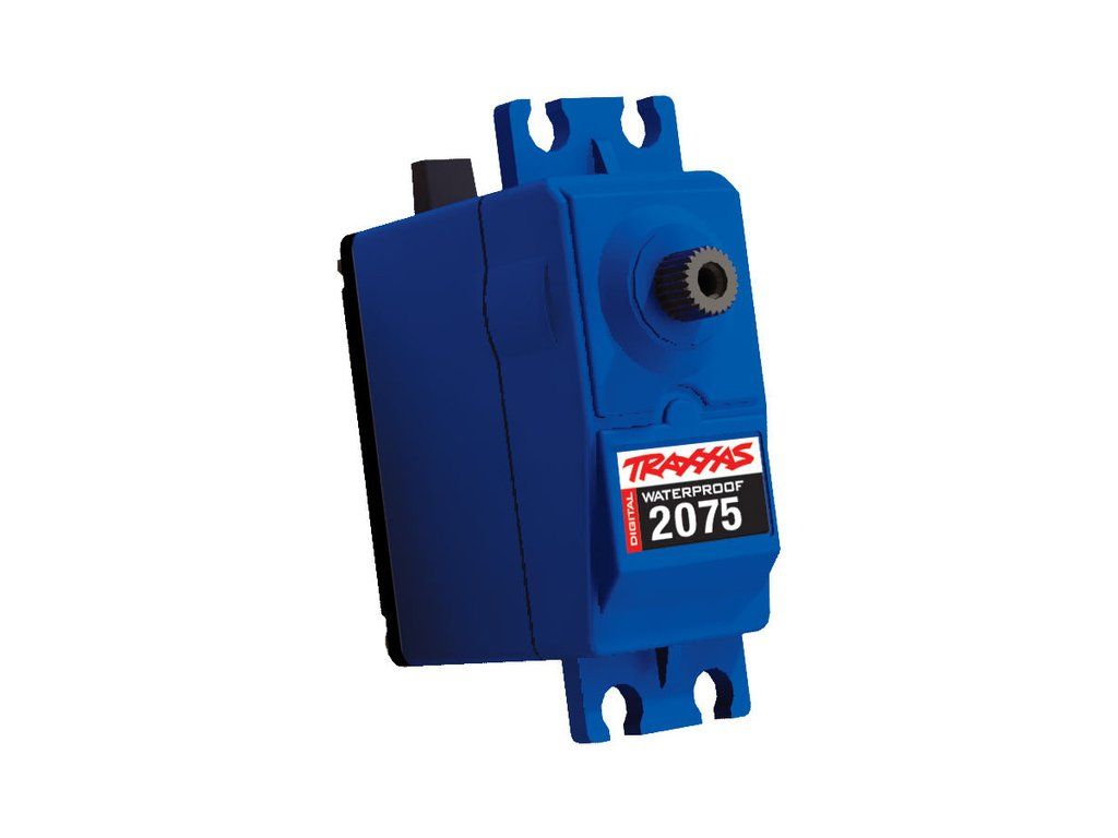 Silné digitální servo standartní velikosti pro RC modely aut 1:10, Traxxas 2075, plastové tělo, voděodolné, má moment 9 kg.cm @ 6V a rychlost 0.17 s/60° @ 6V. Nylonové převody, dvojice ložisek, rozměry: 20x41x36mm, hmotnost 42g. Tisícihran 25T