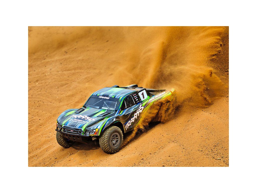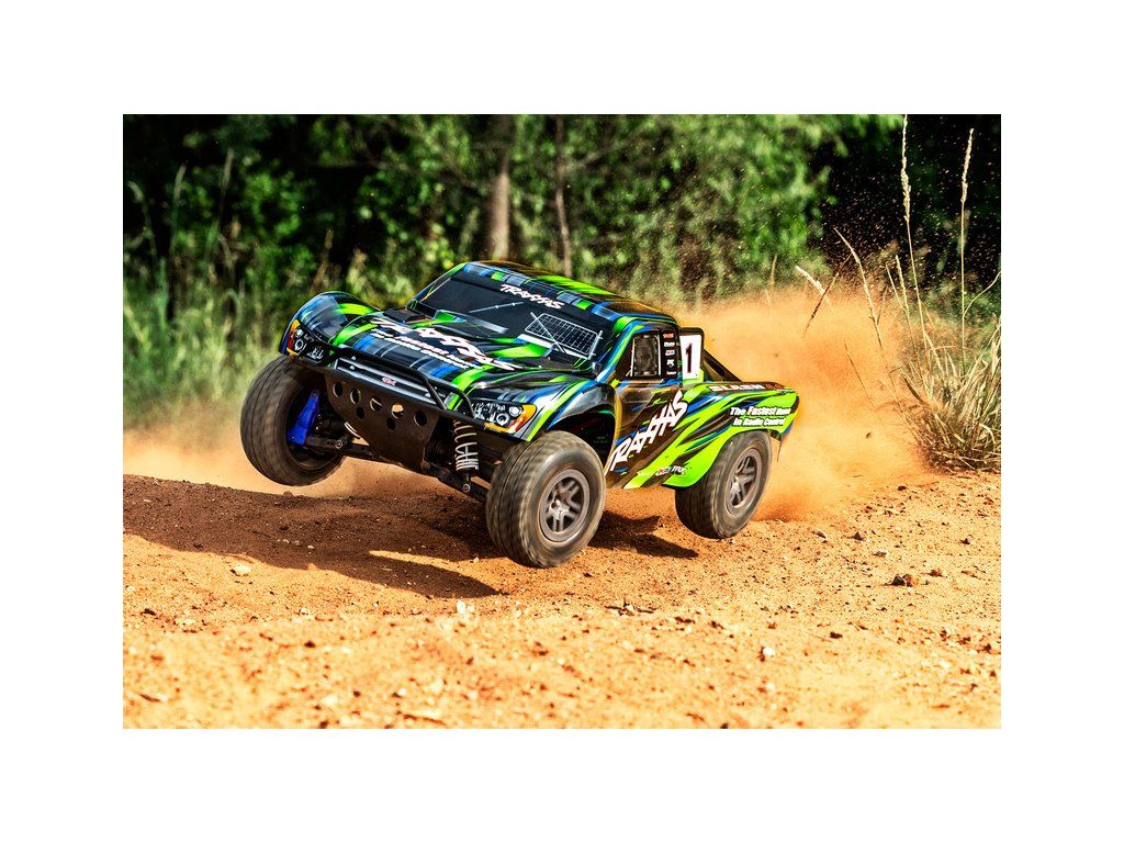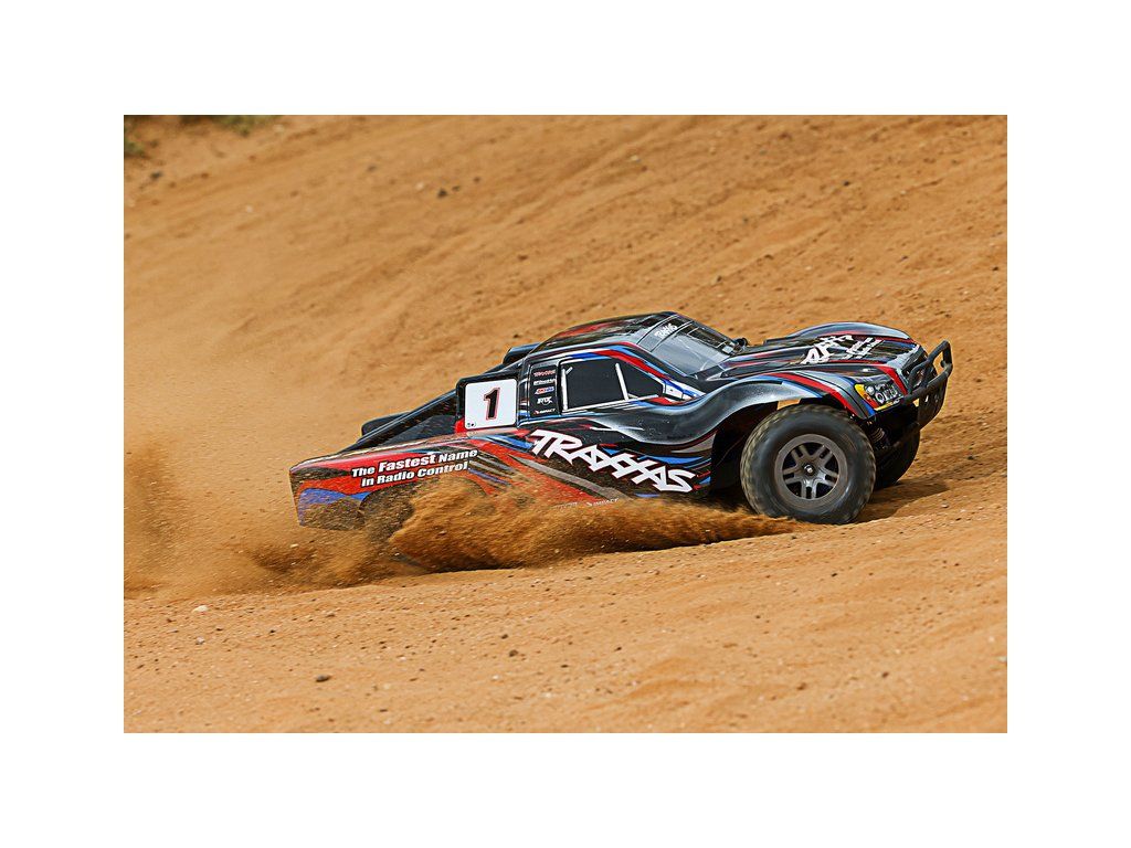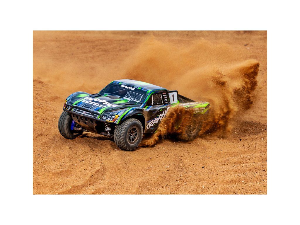RC model auta Traxxas Slash 1:10 BL-2S 4WD RTR s pohonem všech kol. Obsahuje střídavý motor s regulátorem BL-2S, komponenty pro vysokou odolnost - Extreme Heavy Duty a bezsponkouvou karoserii. RC souprava TQ 2.4GHz. Rychlost až 56 km/h.