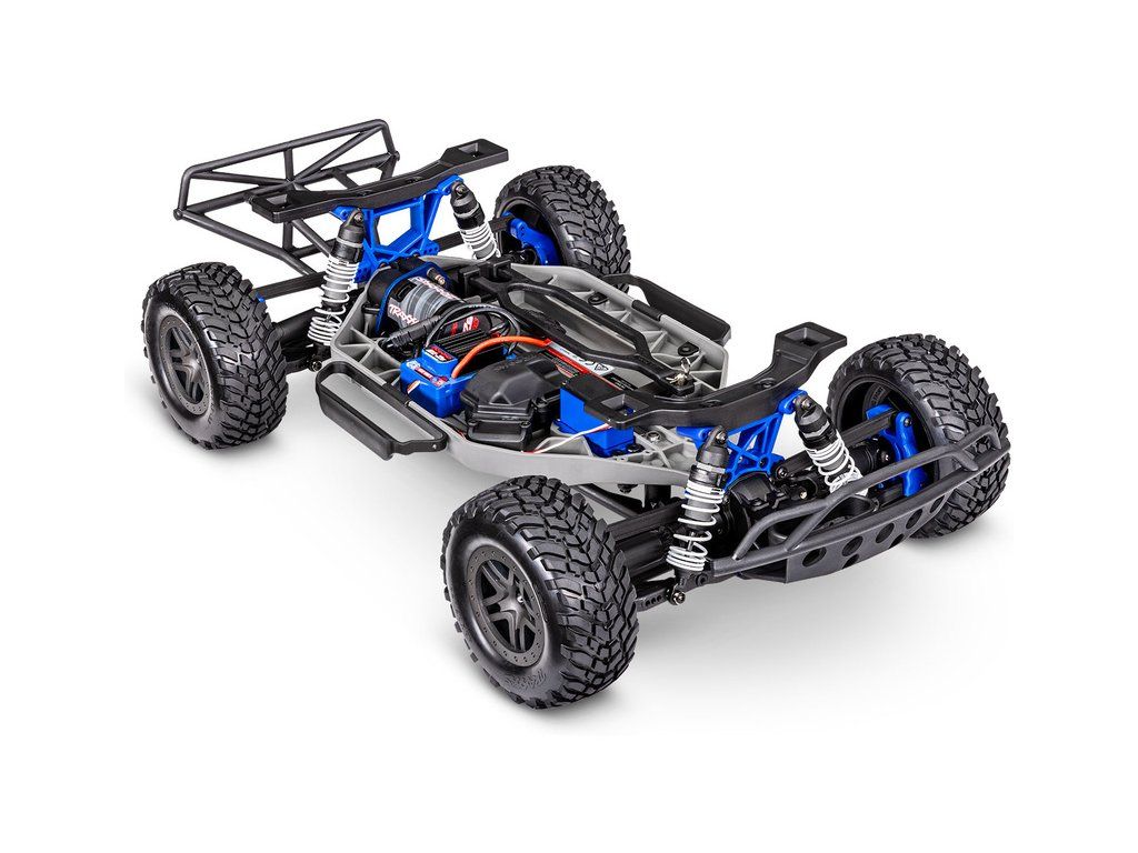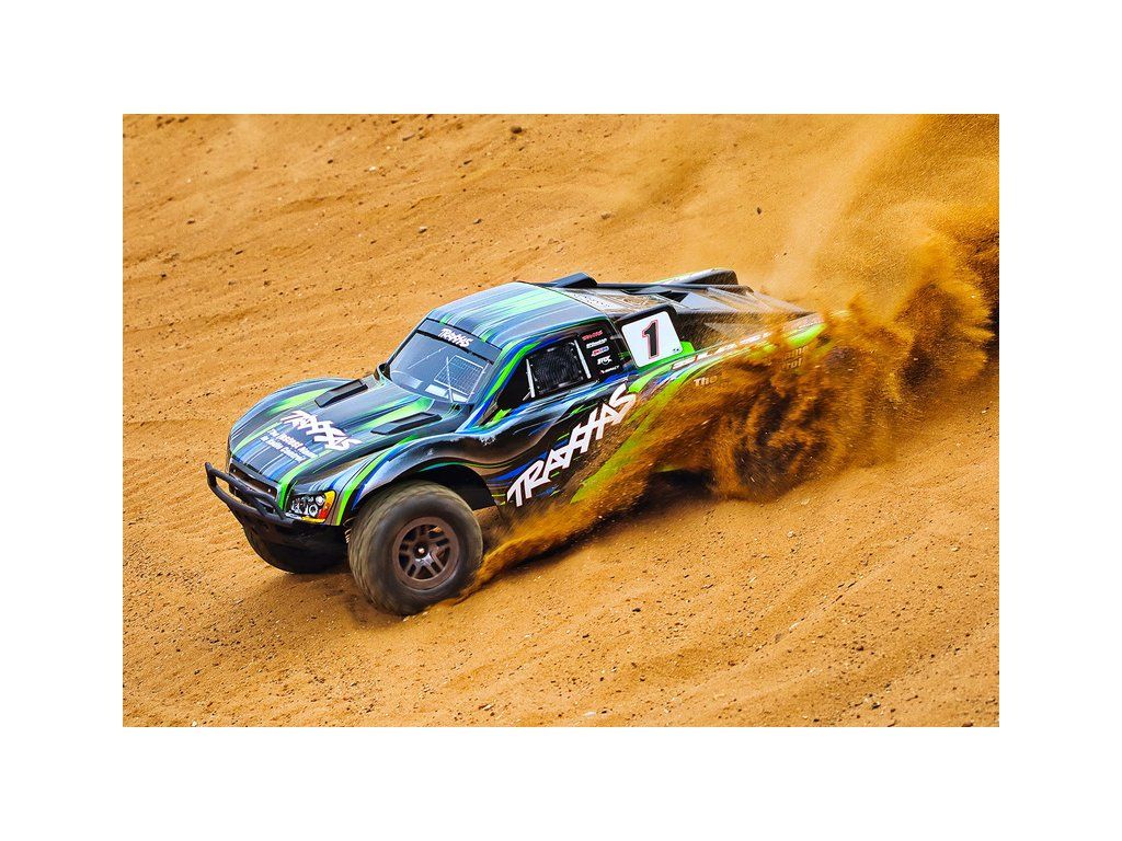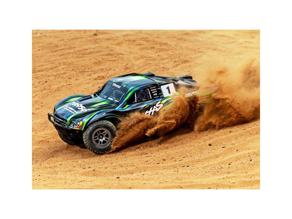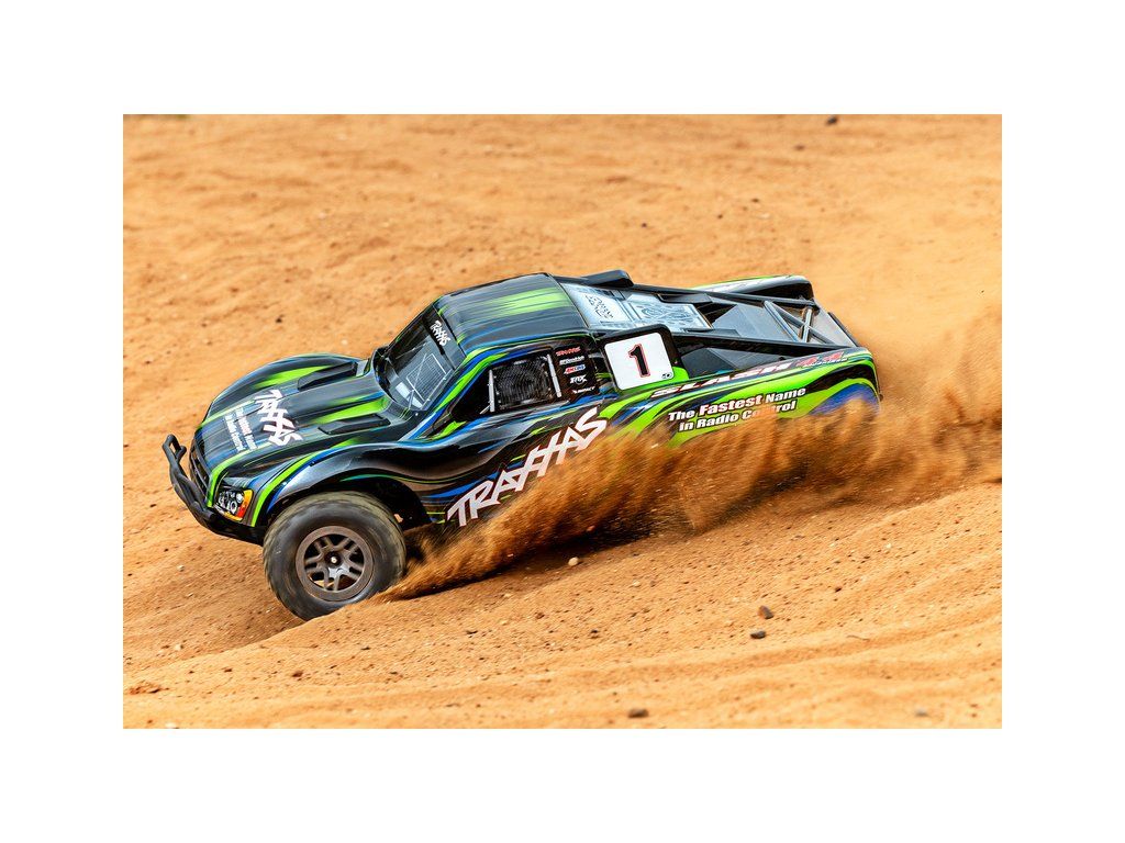 RC model auta Traxxas Slash 1:10 BL-2S 4WD RTR s pohonem všech kol. Obsahuje střídavý motor s regulátorem BL-2S, komponenty pro vysokou odolnost - Extreme Heavy Duty a bezsponkouvou karoserii. RC souprava TQ 2.4GHz. Rychlost až 56 km/h.