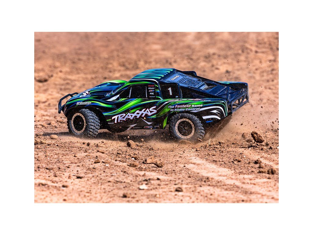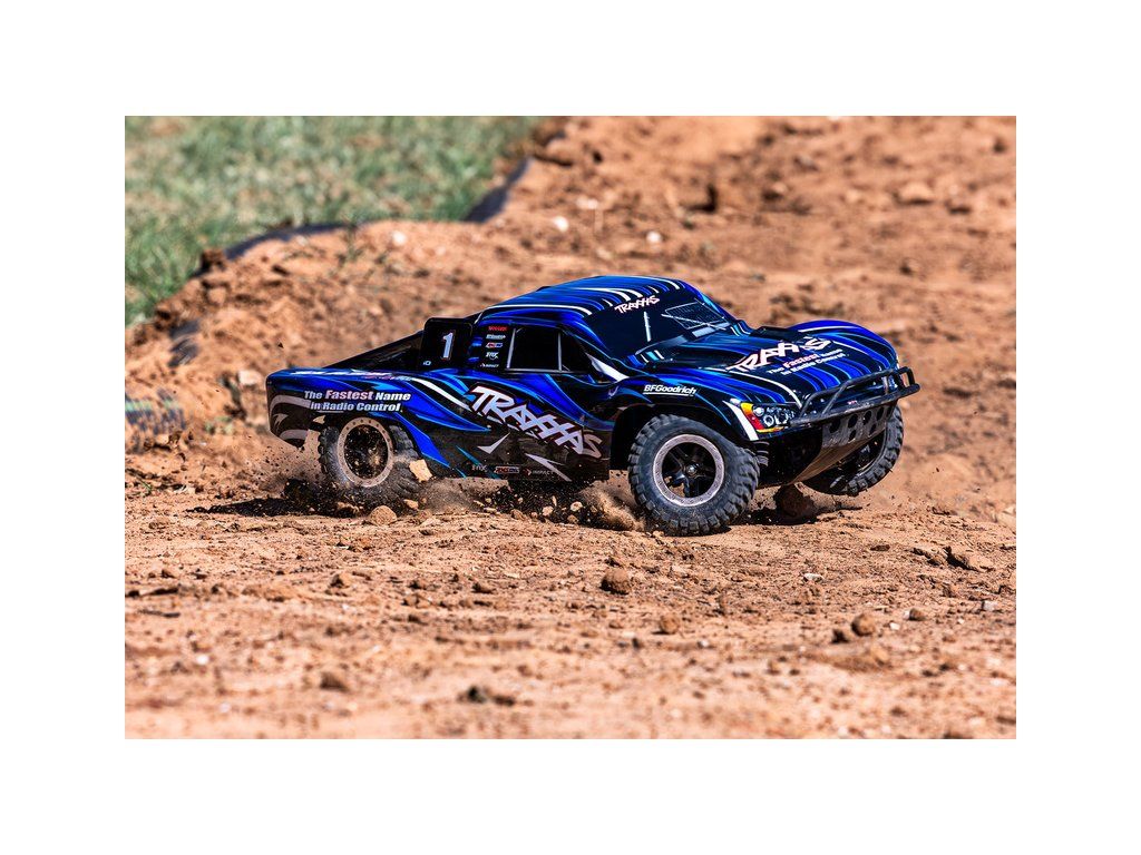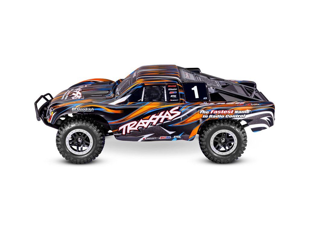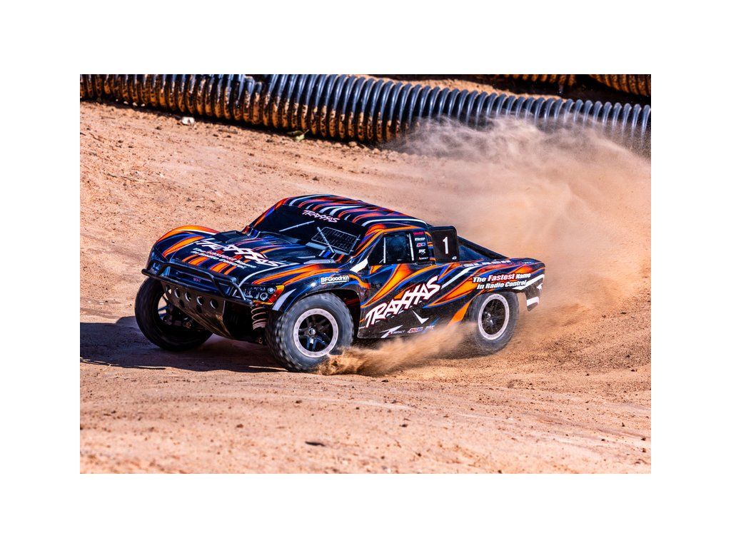 RC model auta Slash VXL HD RTR s náhonem 4x4, komponenty pro vysokou odolnost - Extreme Heavy Duty, střídavým motorem Velineon 550, voděodolnou elektronikou, elektronickou stabilizací jízdy TSM a RC soupravou Traxxas TQi. Bezsponková karoserie. Rychlost až 96 km/h.