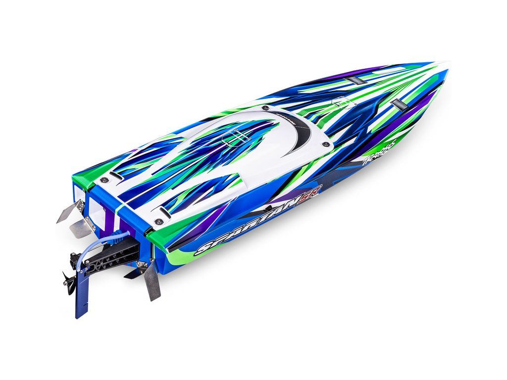 Extrémně výkonný a rychlý RC model lodi Traxxas Spartan SR 36" se střídavým motorem a vodním chlazením. Rychlost až 80 km/h. Exkluzivní funkce automatického otočení v případě převrácení. Trup Deep-V pro přesné a rychlé řízení. Bezsponkový kryt. Elektronická stabilizace TSM.
