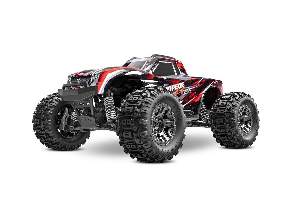 RC model auta Traxxas Stampede VXL v měřítku 1:10, s náhonem 4x4, nadrozměrným střídavým motorem 540XL, regulátorem VXL-3S, dosáhne rychlosti až 96 km/h. Elektronická stabilizace jízdy. Komponenty pro vysokou odolnost - Extreme Heavy Duty, bezsponková karoserie a pneu Sledgehammer.