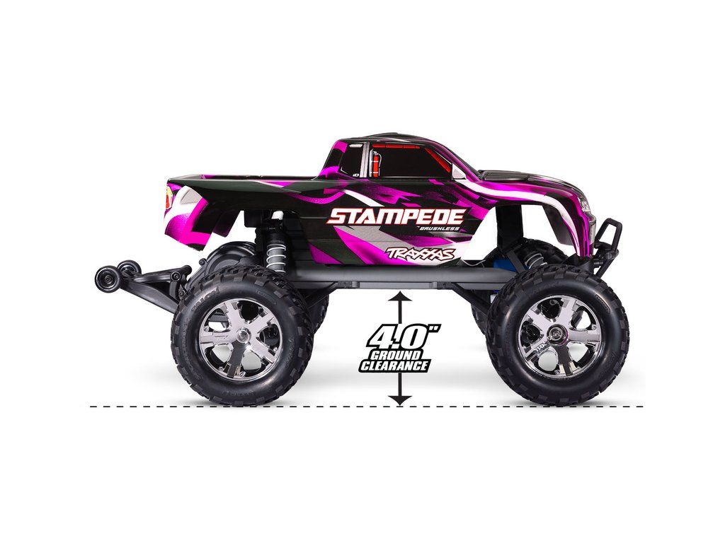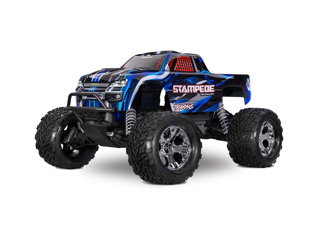 RC model auta Stampede v měřítku 1:10, typu Monster Truck. Pohání jej výkonný střídavý motor s regulátorem BL-2S. Model jezdí až 64 km/h! Obsahuje bezsponkovou karoserii, komponenty pro vysokou odolnost - Extreme Heavy Duty a náhon 2WD. RC souprava TQ 2.4 GHz.