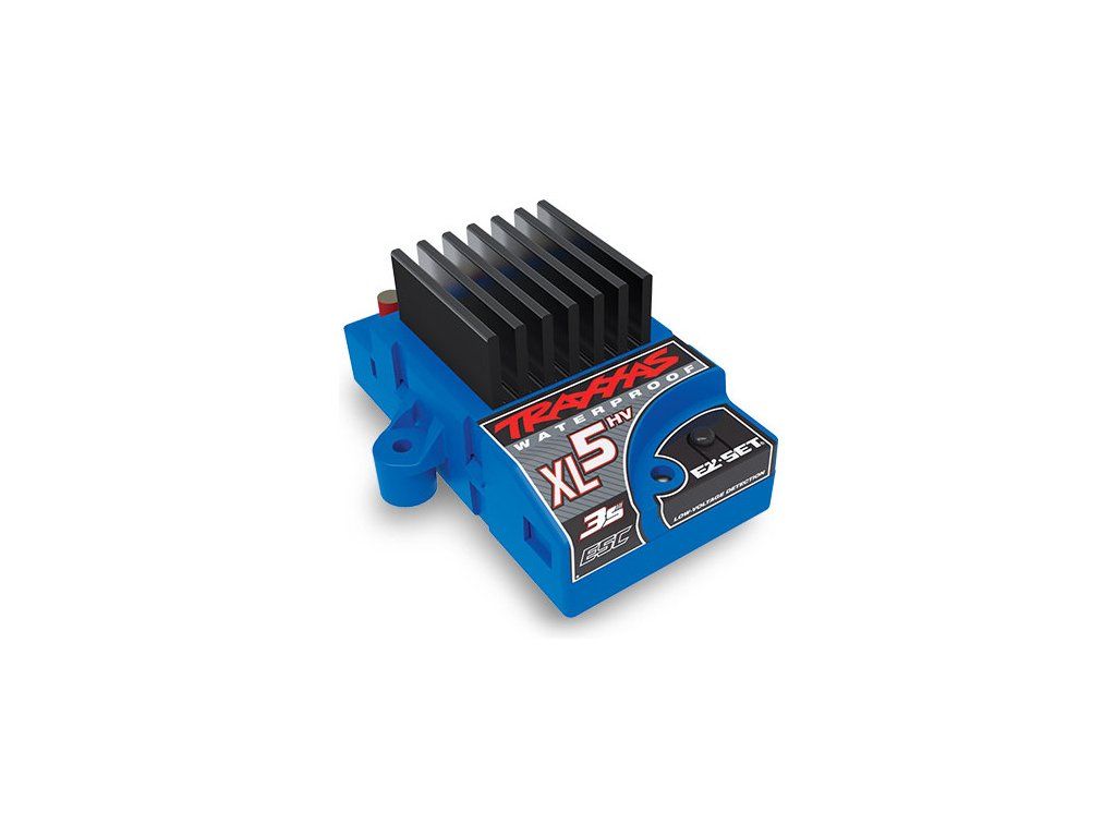 Stejnosměrný regulátor XL-5 HV pro auta Traxxas v měřítku 1:10, poháněná stejnosměrným motorem. Napájení až 3S LiPol bateriemi. 5 jízdních režimů, včetně režimu Crawler a Trail.