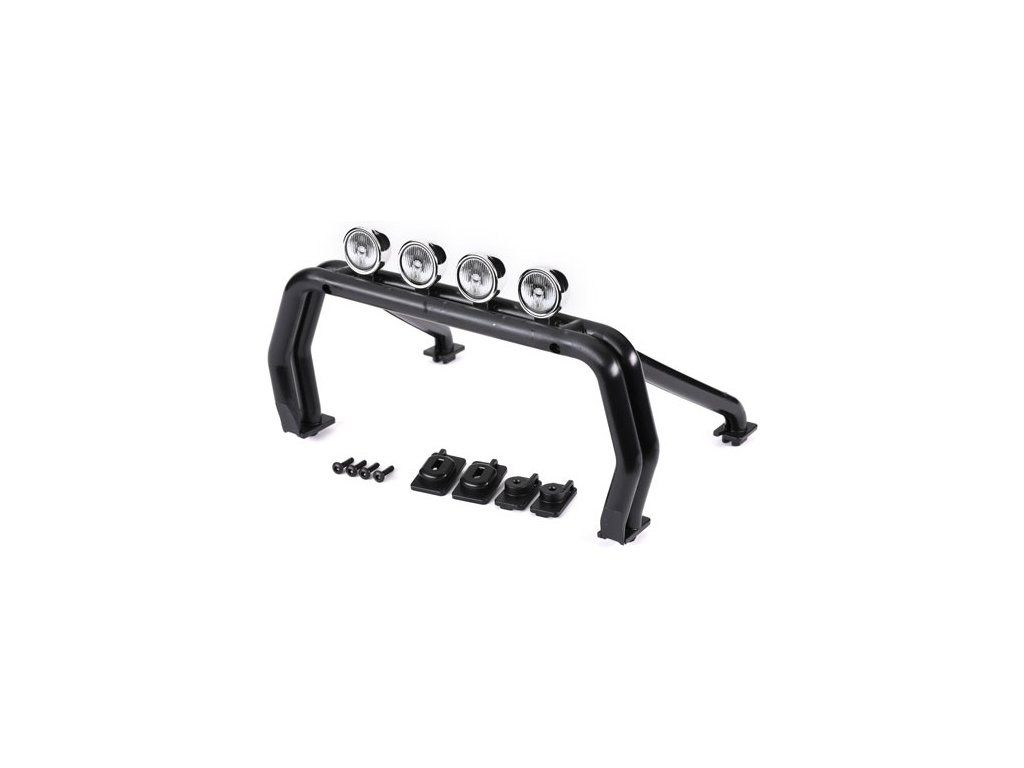Ochranný rám černý se světlomety karosérie horní. Držák (přední (2), zadní (levý & pravý))/ vrut 2.6x12mm BCS (4). Určeno pro karoserie TRX-4 typu Pick-up např. #9212 a #9230.