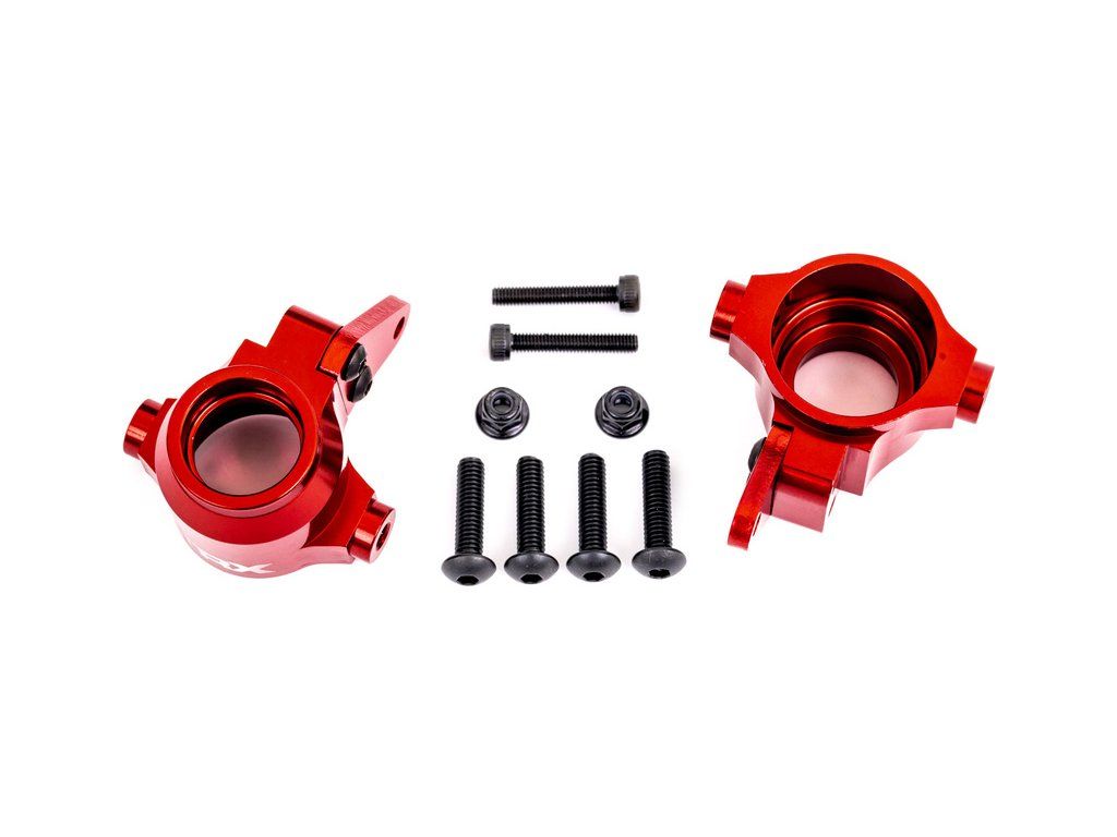 Tuningový díl z lehkého a odolného hliníku pro vyskou odolnost. Designové barevné eloxování - Traxxas těhlice přední hliníková červeně eloxovaná (levá a pravá)