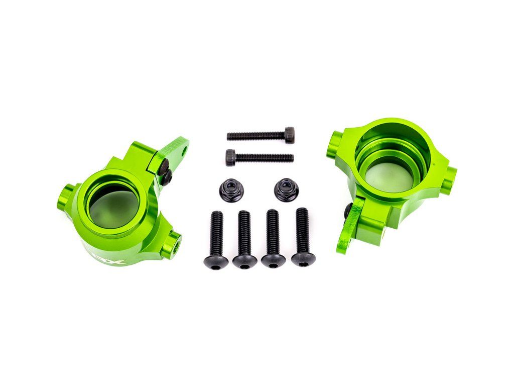Tuningový díl z lehkého a odolného hliníku pro vyskou odolnost. Designové barevné eloxování - Traxxas těhlice přední hliníková zeleně eloxovaná (levá a pravá)