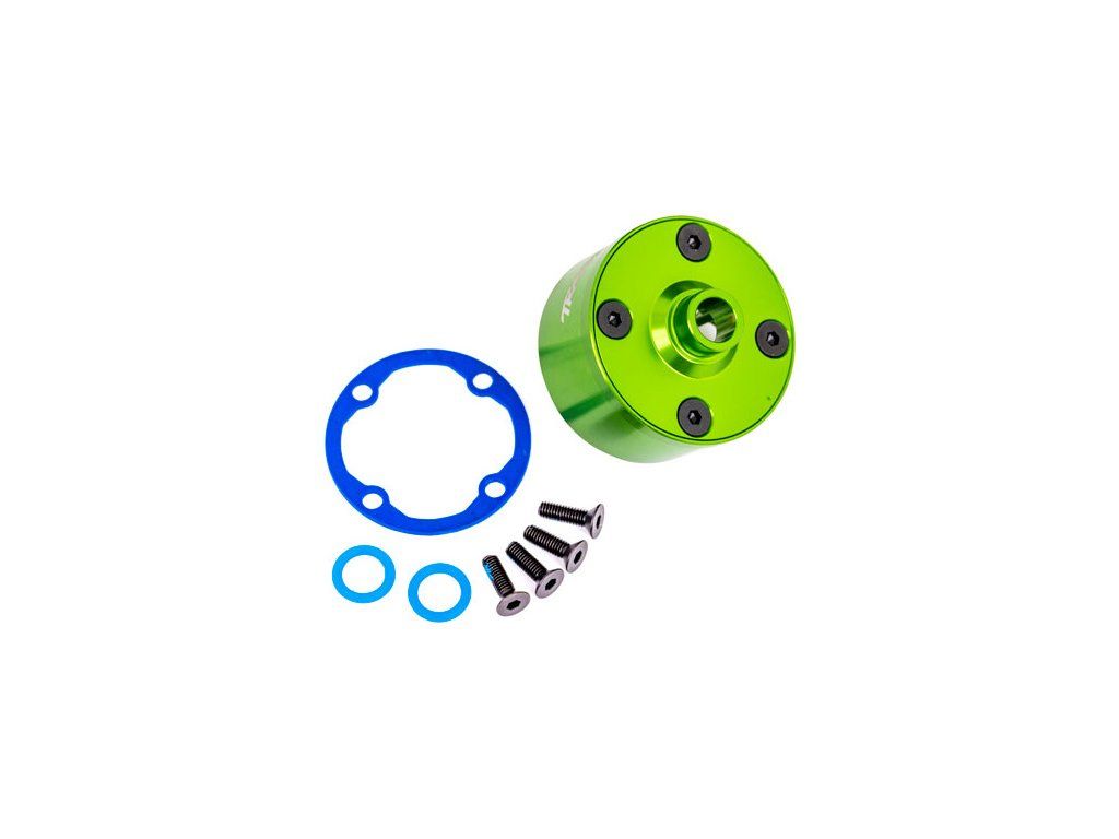 Traxxas tělo diferenciálu hliníkové zeleně eloxované - těsnění, 4x šroub 3x10 mm CCS.
