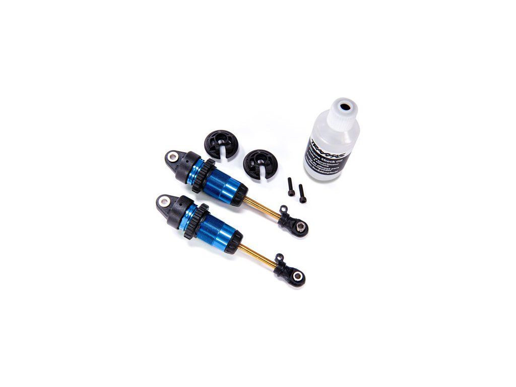 Traxxas tlumič GTR long hliník/PTFE modrý, pístnice TiN (2)