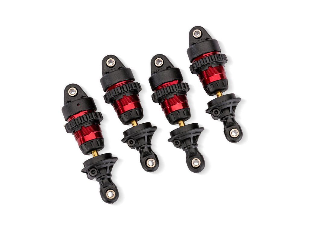 Traxxas tlumič Mini GTR hliníkový červený (4) (4) včetně pružiny (4). Vyrobeno z odolného eloxovaného hliníku. Matice pro snadné nastavení předpětí pružin. Tělo potaženo PTFE (teflonem) pro dlouhotrvající a ultra plynulý tlumící výkon. Pístnice z kalené oceli má povrch povlakovaný nitridem titanu pro tvrdost, otěruvzdornost a snížení tření. Těsnící X-kroužky.