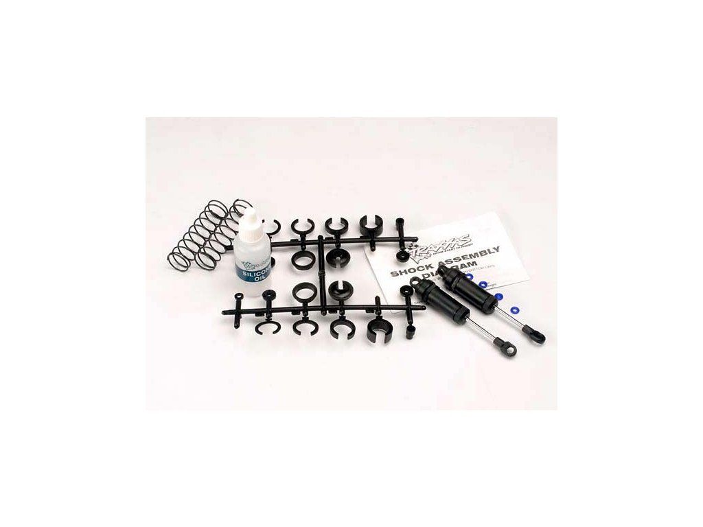 Tlumič Ultra Shock long (přední) černý (2ks). Olejem plněné tlumiče Ultra Shocks využívají X-kroužky pro dokonalé utěsnění a super hladký výkon. Sestavený tlumič (2), vč. pružiny (2), podložek pod pružiny a oleje do tlumičů. Náhradní díl pro RC modely aut Traxxas 1:10.