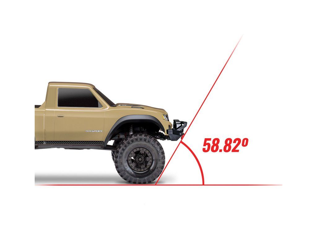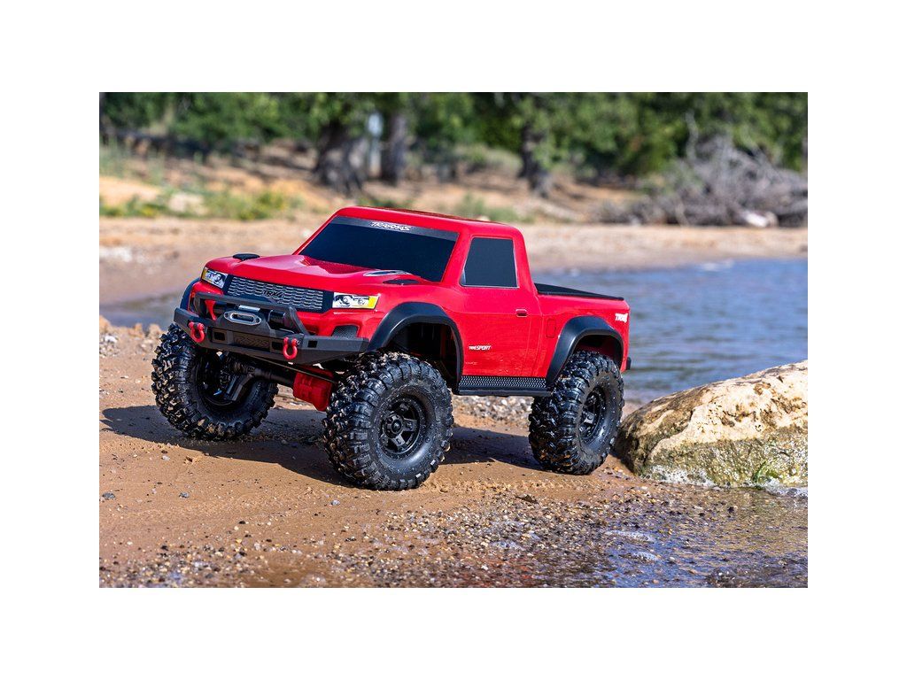 Expediční RC model auta Traxxas TRX-4 Sport obsahující portálové nápravy, kovový rám šasi, hliníkové olejové tlumiče, nově podběhy kol a bezsponkovou karoserii. Osvědčená elektronika - stejnosměrný motor 550 21T, regulátor XL-5HV, RC souprava TQ.