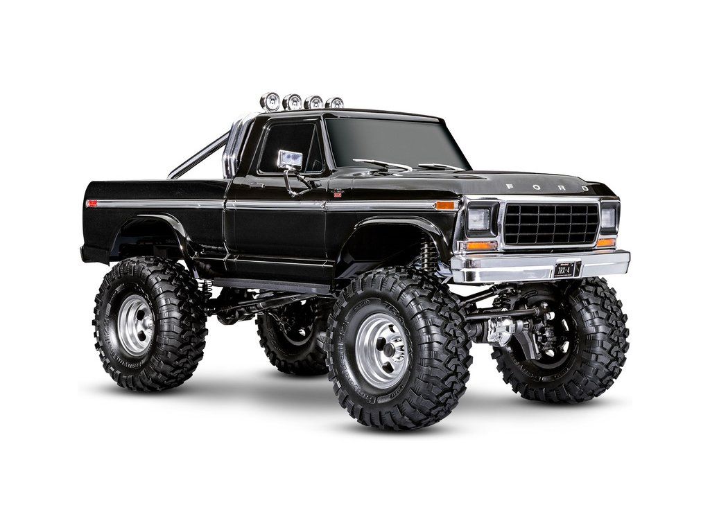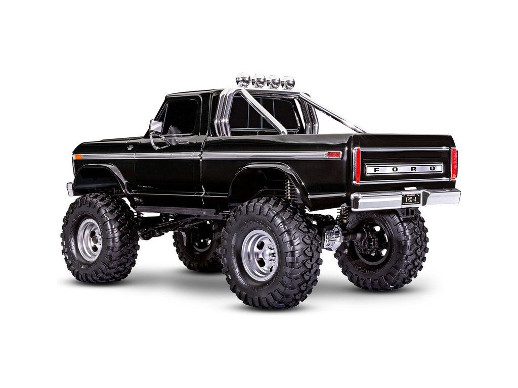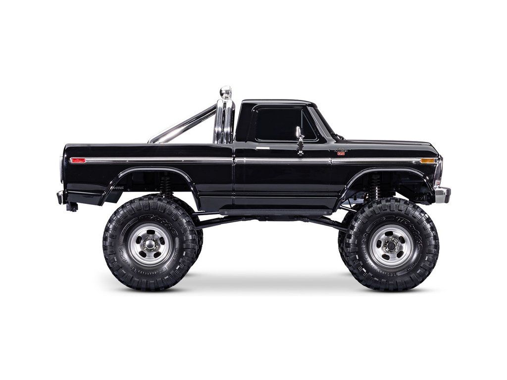 Expediční RC model auta TRX-4 Ford F-150 Ranger XLT 1979 s vyšší světlou výškou, většími 2.2" koly, delším rozvorem a detailní bez-sponkovou karoserií. Chromované prvky, rám korby, portálové nápravy, dálkově řízená převodovka a uzávěrky diferenciálů.