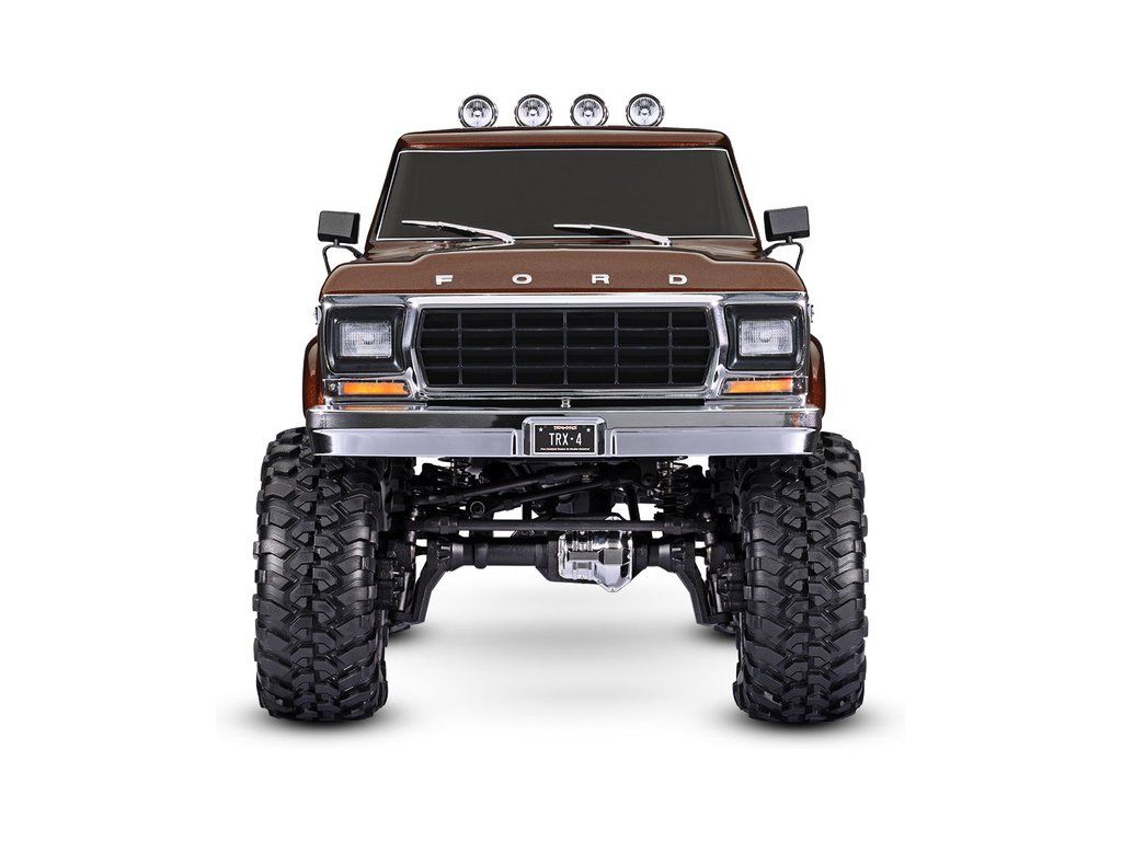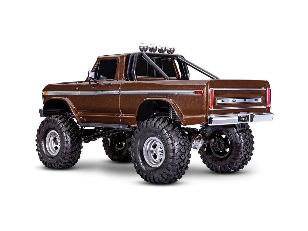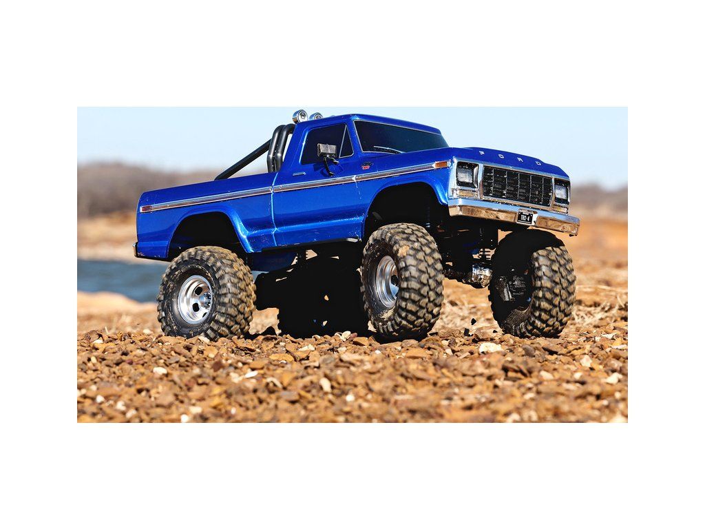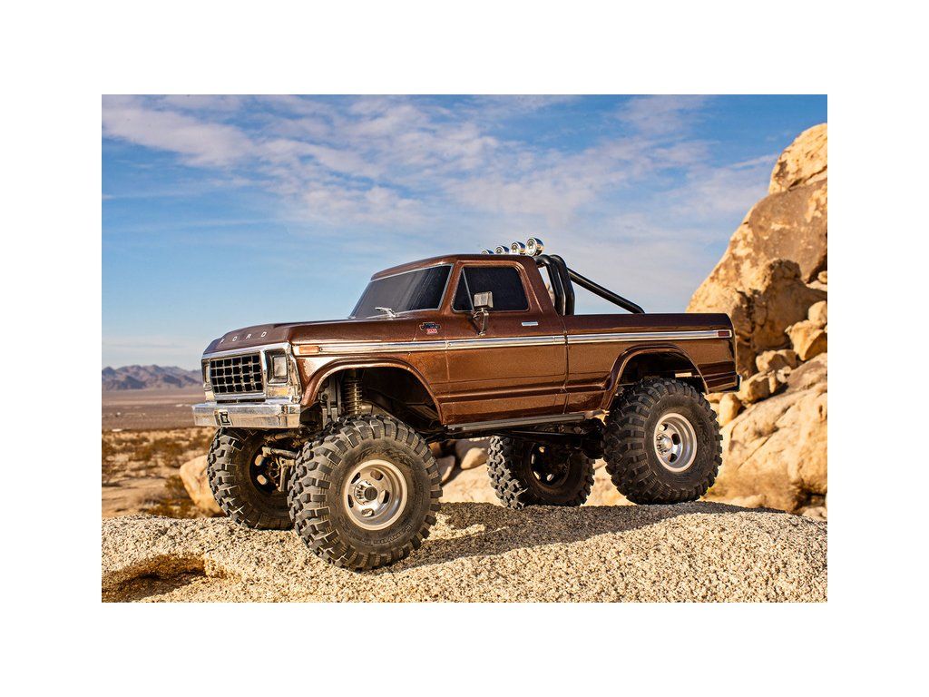 Expediční RC model auta TRX-4 Ford F-150 Ranger XLT 1979 s vyšší světlou výškou, většími 2.2" koly, delším rozvorem a detailní bez-sponkovou karoserií. Chromované prvky, rám korby, portálové nápravy, dálkově řízená převodovka a uzávěrky diferenciálů.