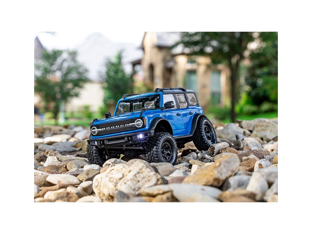 RC model auta Traxxas TRX-4M Ford Bronco 2021 v měřítku 1:18 s úžasnou všestranností a schopnostmi. Kovový rám podvozku se 4-bodovým zavěšením, olejové tlumiče, úhel zatáčení 45°, licencovaná bez-sponková karoserie, LED osvětlení v nárazníku. LiPo baterie a USB nabíječ.