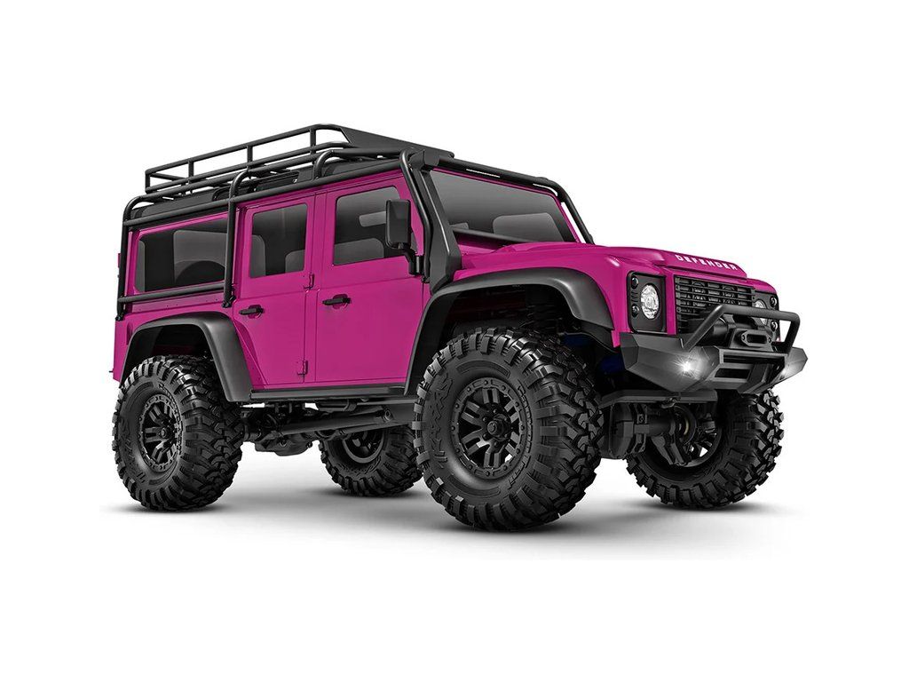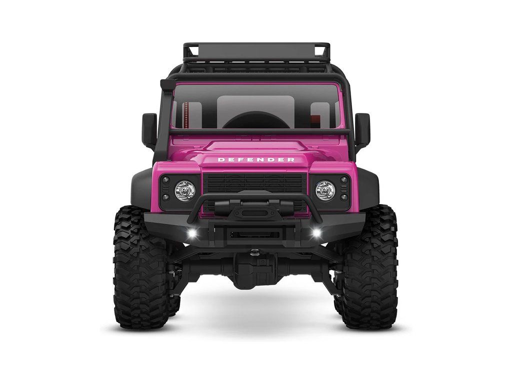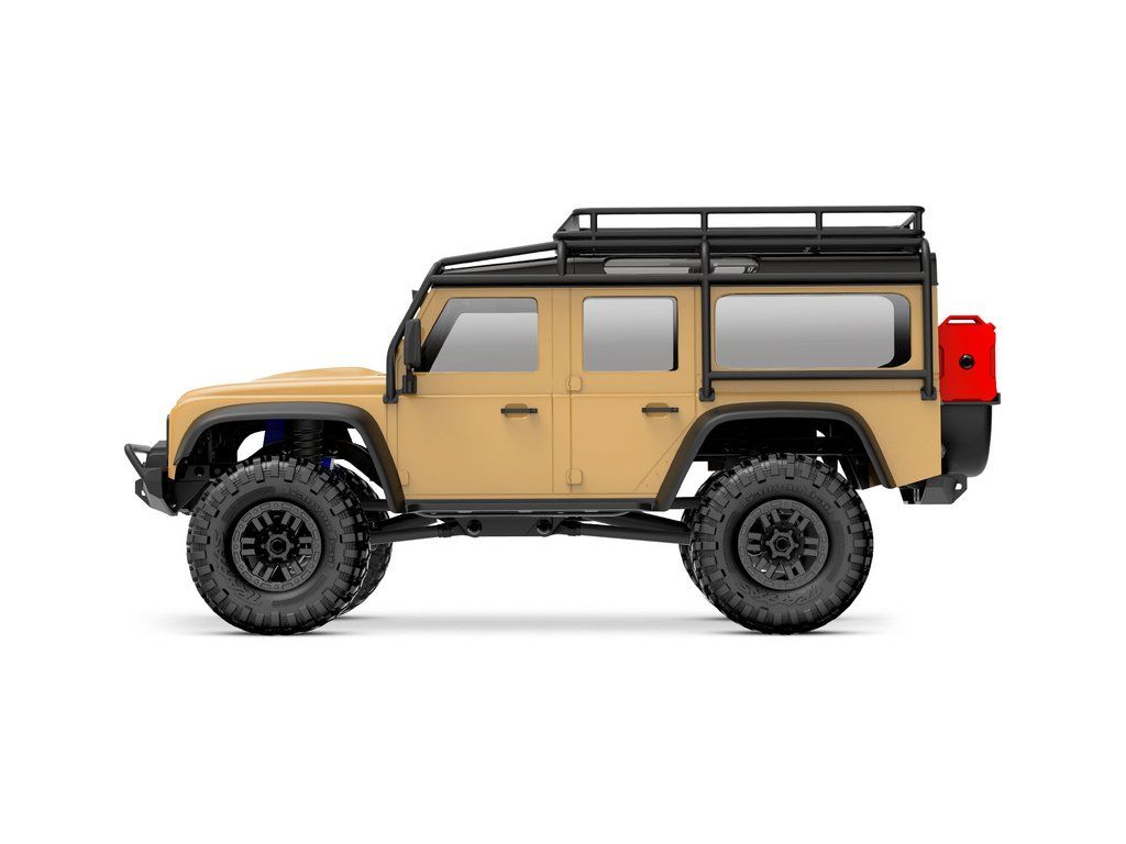 RC model auta Traxxas TRX-4M Land Rover Defender v měřítku 1:18 s úžasnou všestranností a schopnostmi. Kovový rám podvozku se 4-bodovým zavěšením, olejové tlumiče, úhel zatáčení 45°, licencovaná bez-sponková karoserie, LED osvětlení v nárazníku. Baterie 2S LiPo a USB nabíječ.