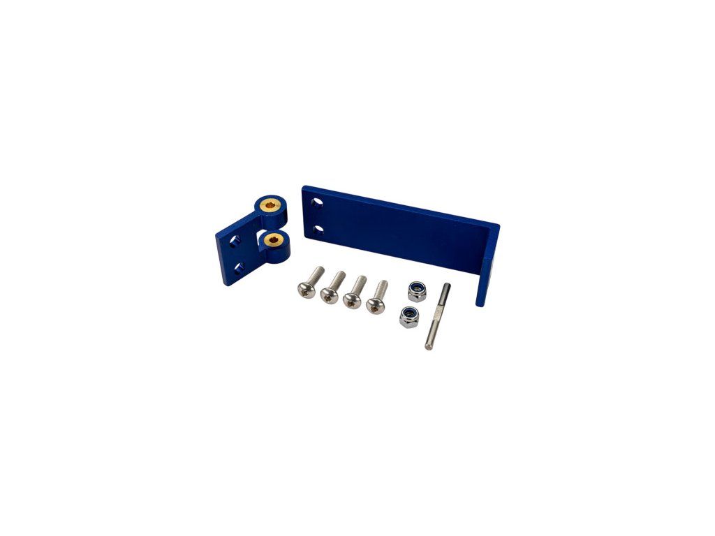 Traxxas unašeč kormidla: Spartan SR. Modře eloxovaný hliníkový držák kormidla a čep kormidla s nerezovými montážními šrouby 4x14 mm (4) a 4 mm pojistnými maticemi (2).