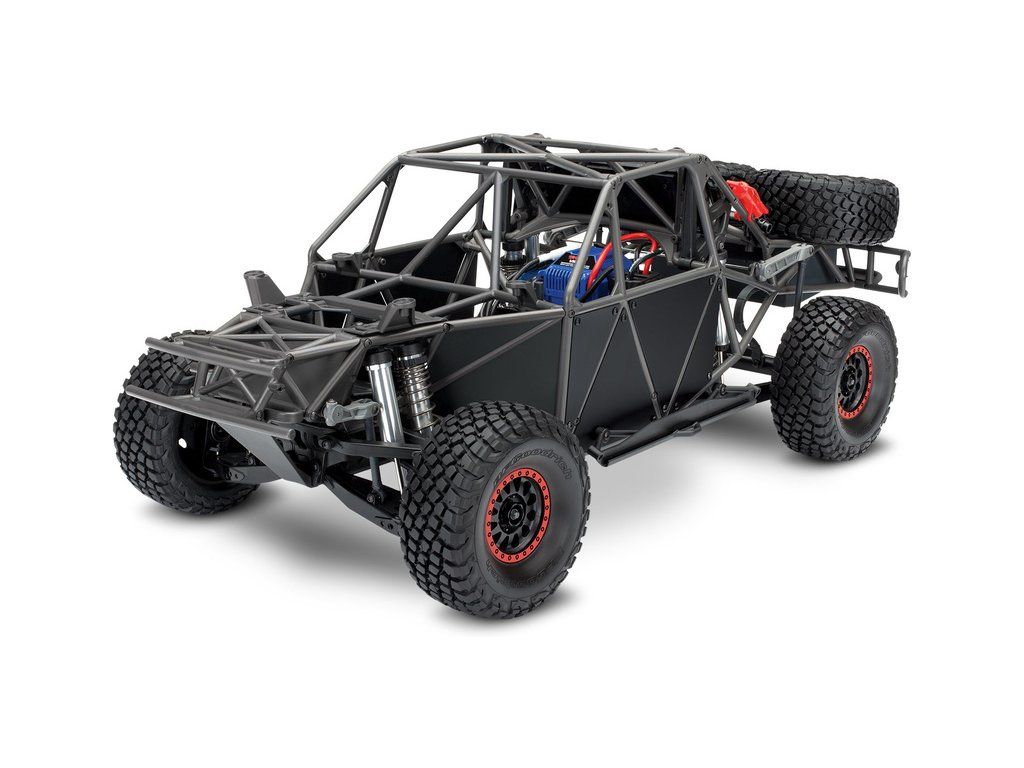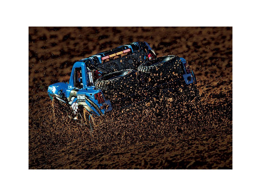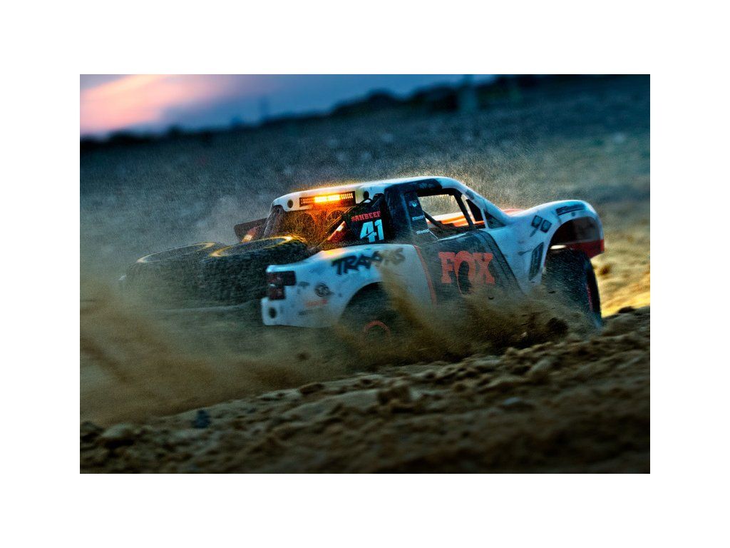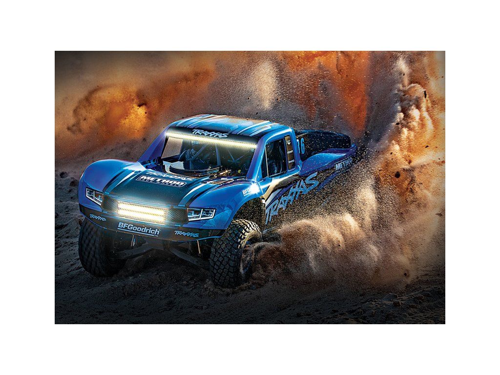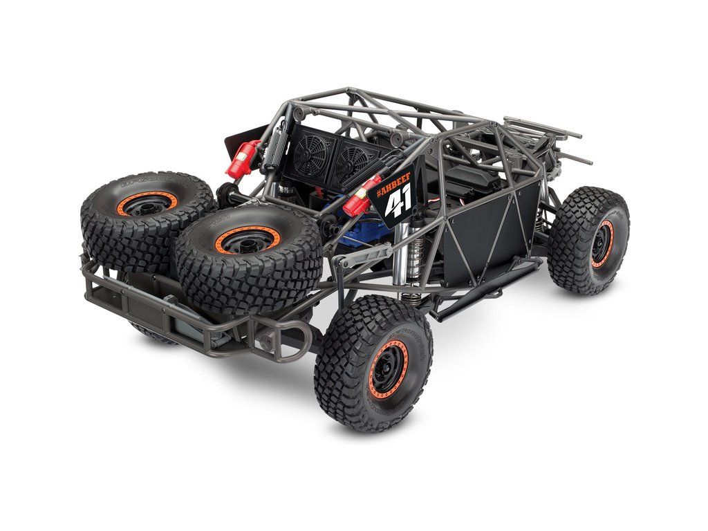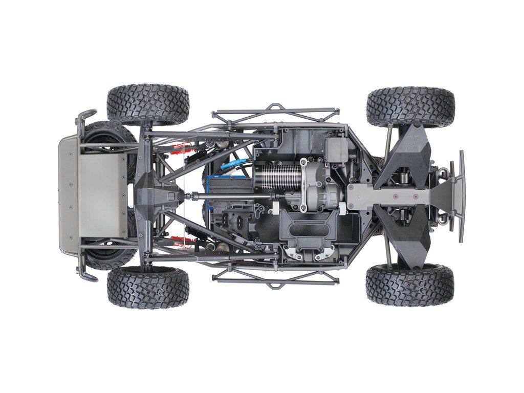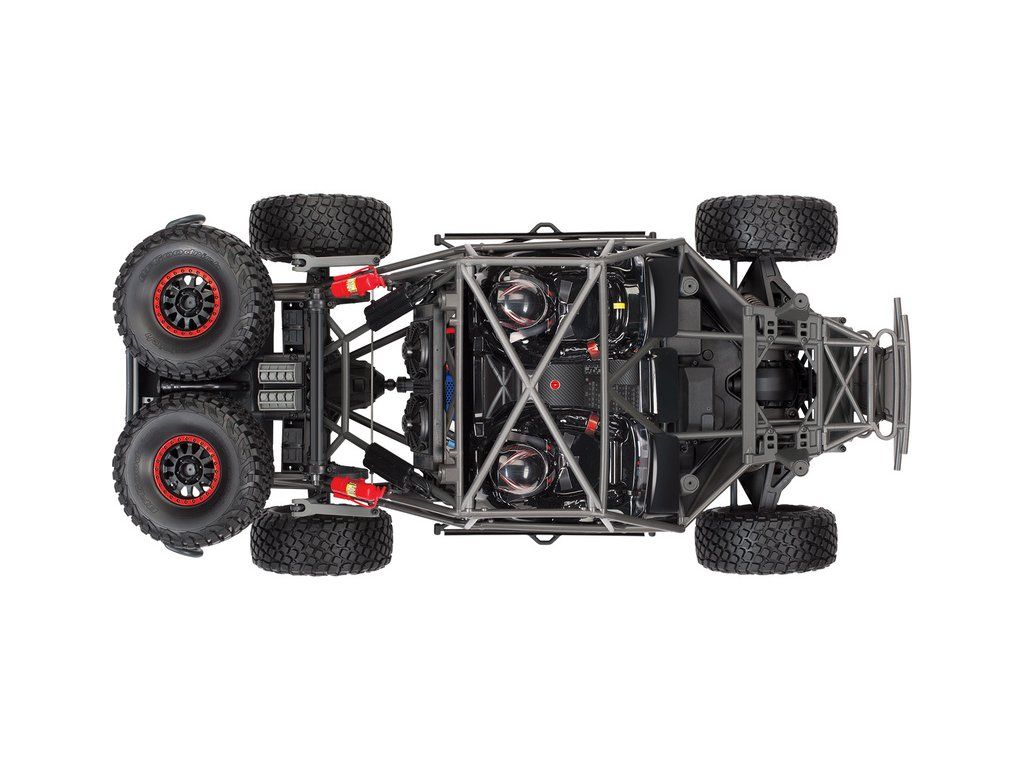 RC model auta Traxxas Desert Racer. Nejrealističtější zpracování pouštního závoďáku s autentickou klecí, kabinou a zavěšením. Kompletní chytré LED osvětlení s funkčními brzdovými světly. Výkonný střídavý pohon. Elektronická stabilizace jízdy. Rychlost až 80 km/h