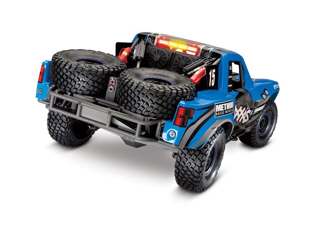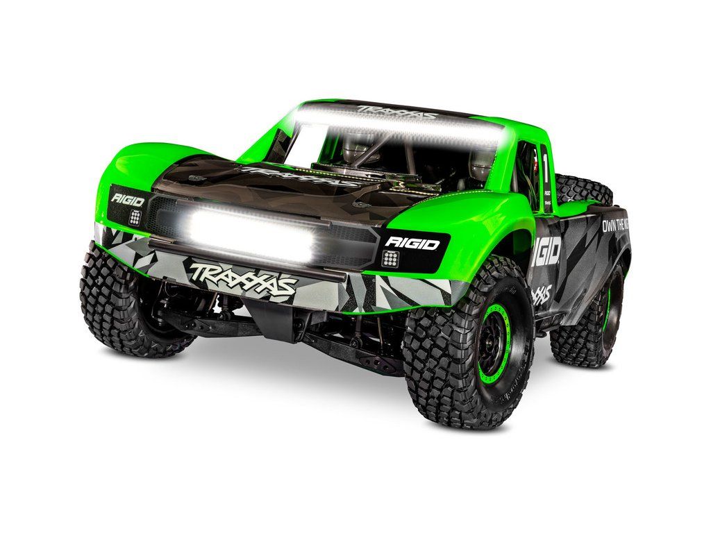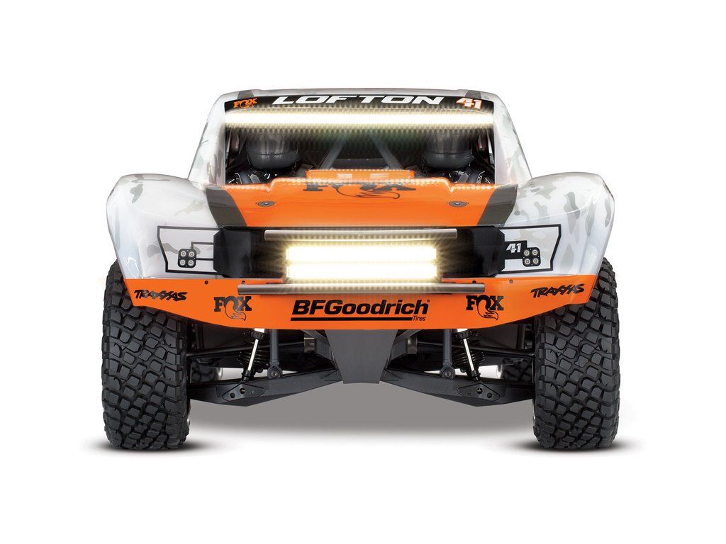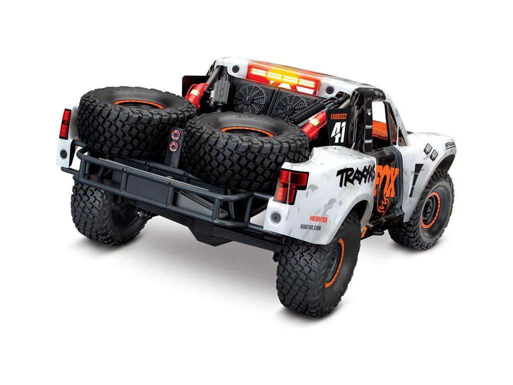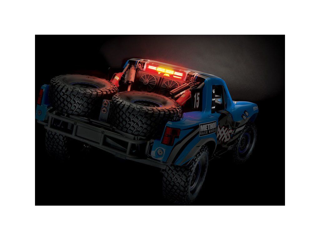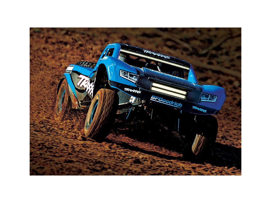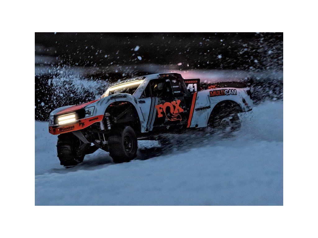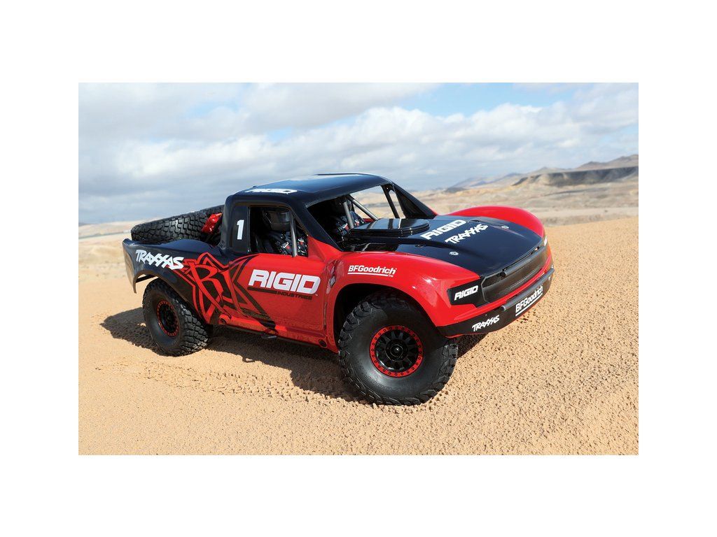 RC model auta Traxxas Desert Racer. Nejrealističtější zpracování pouštního závoďáku s autentickou klecí, kabinou a zavěšením. Kompletní chytré LED osvětlení s funkčními brzdovými světly. Výkonný střídavý pohon. Elektronická stabilizace jízdy. Rychlost až 80 km/h