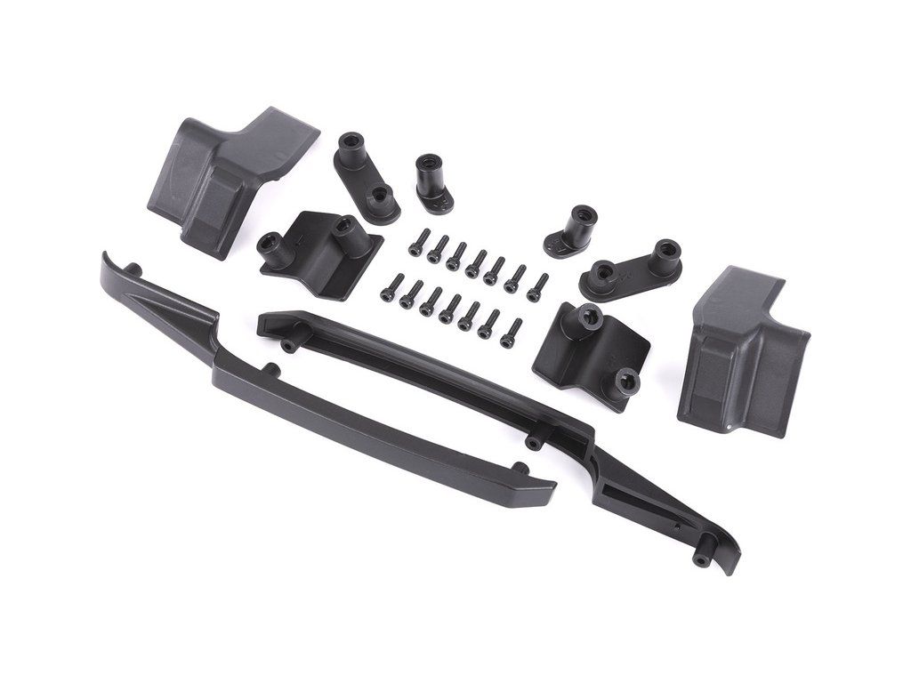 Náhradní díl pro karosérie Maxx Slash: výztuha karosérie horní. Obsahuje střešní ližiny, zadní ochranné pláty, podpěry karoserie a 14x šroub 3x10 mm CS.