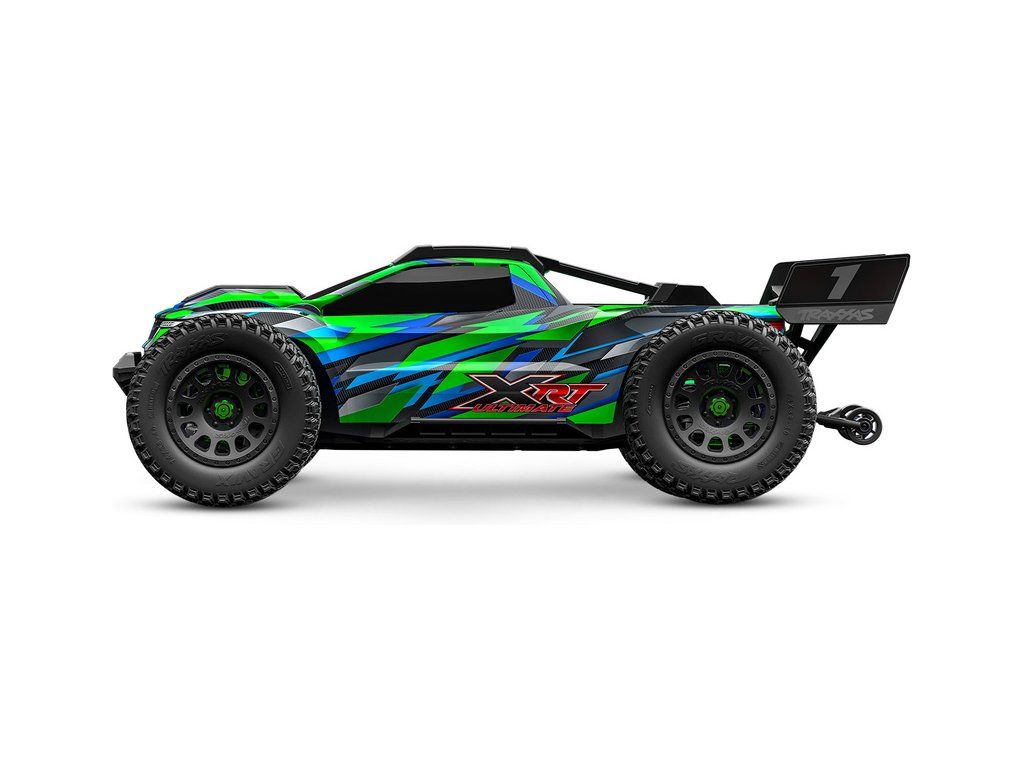 Extrémně výkonný RC model auta Traxxas XRT ve vrcholné verzi Ultimate - vybaven hliníkovými díly, Bluetooth modulem (vč. telemetrie), odolnějším servem řízení a vylepšenými pneumatikami. Celokovová hnací soustava, bez-sponková karoserie, regulátor VXL-8S. Rychlost až 96 km/h.