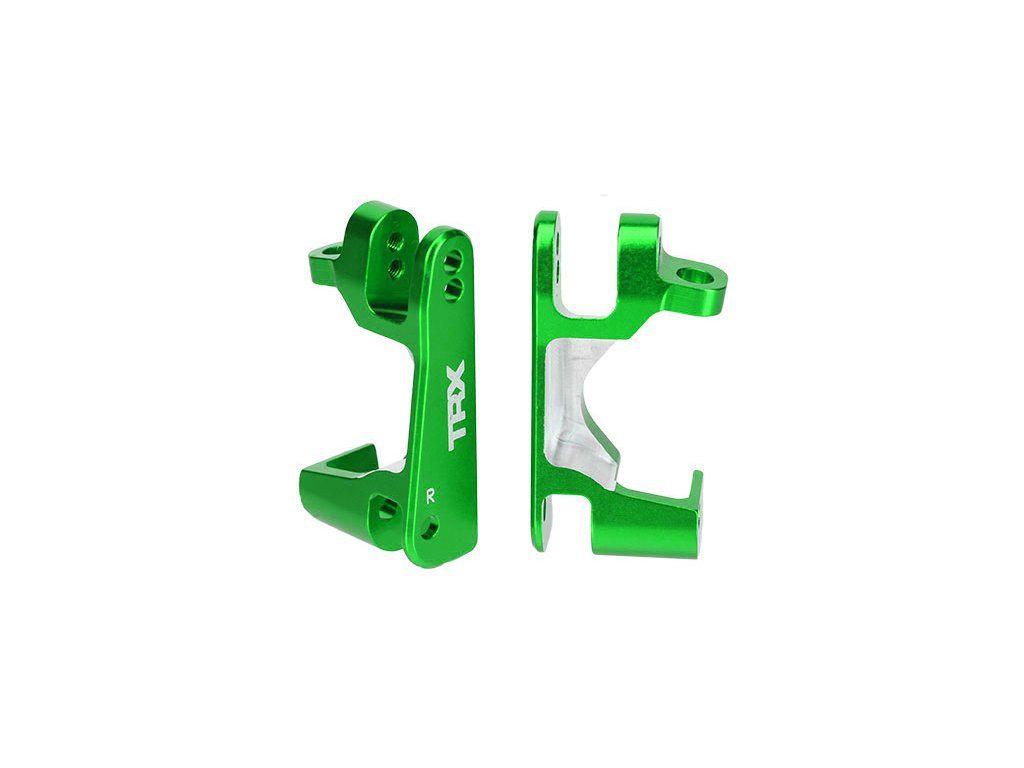 Traxxas závěs těhlice zeleně eloxovaný. V balení 2 ks (levý a pravý).
