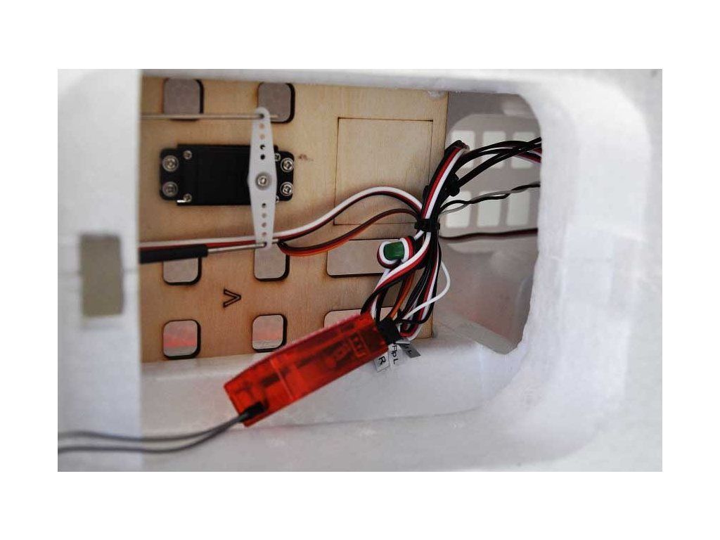 Pro ovládání modelu budete potřebovat přinejmenším šestikanálovou RC soupravu – pokud obě serva křidélek jsou zapojeny do jednoho kanálu přijímače. Pokud budete chtít zachovat nezávislé ovládání obou křidélek a ovládat LED osvětlení, budete potřebovat aspoň osmikanálovou RC soupravu.
