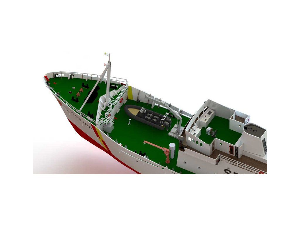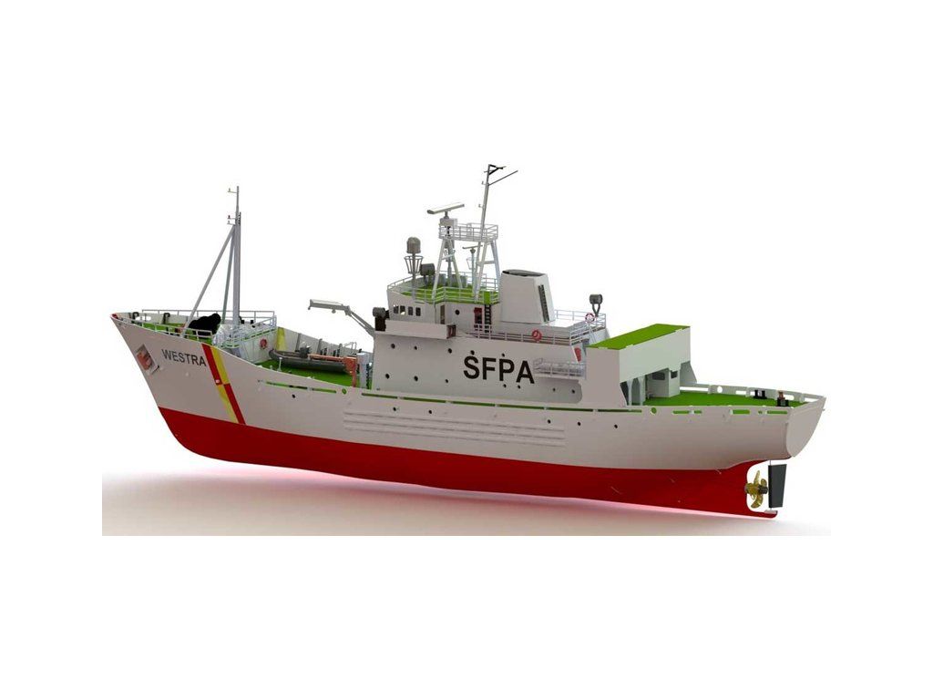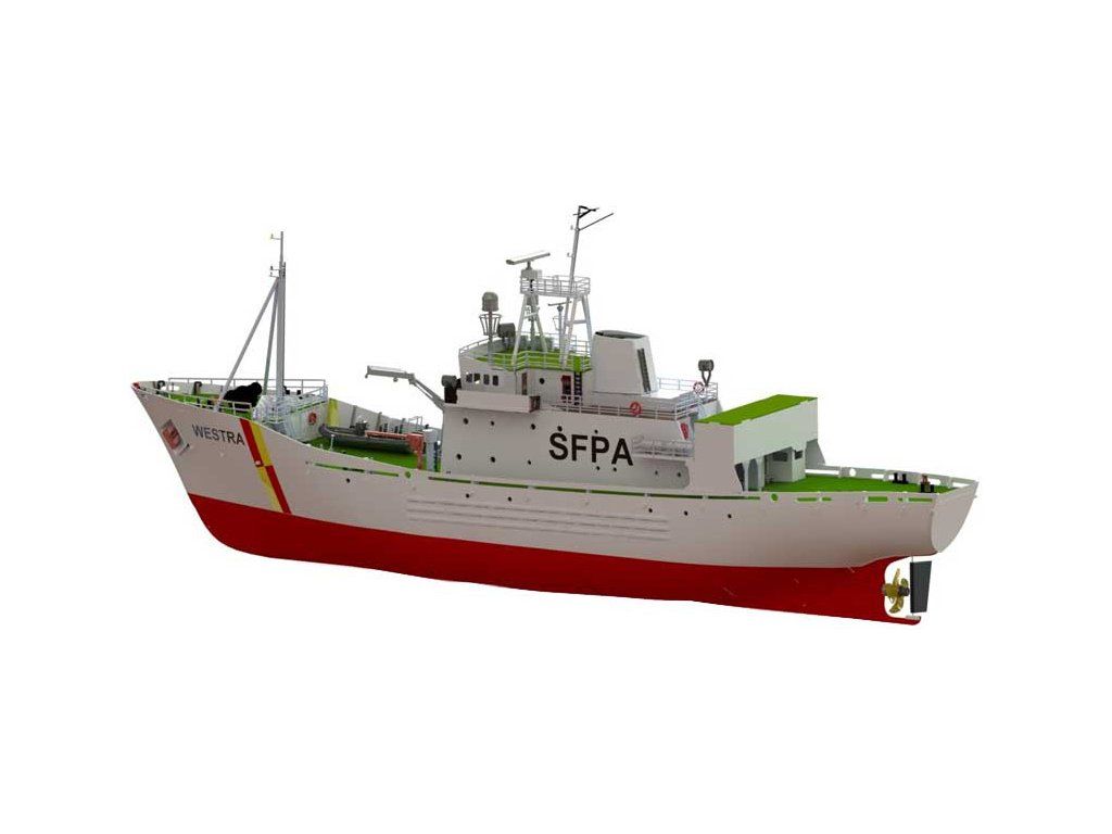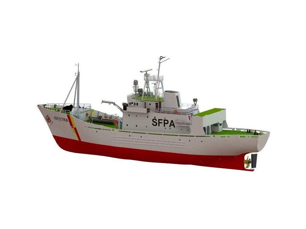 Stavebnice modelu hlídkového člunu FPV Westra od Türkmodel v měřítku 1:50. Pro pokročilé modeláře. Dřevěný trup z laserem vyřezaných dílů, doplněné o detaily z resinovaného 3D tisku. Statický model, lze rozšířit o RC vybavení, pro plavbu.
