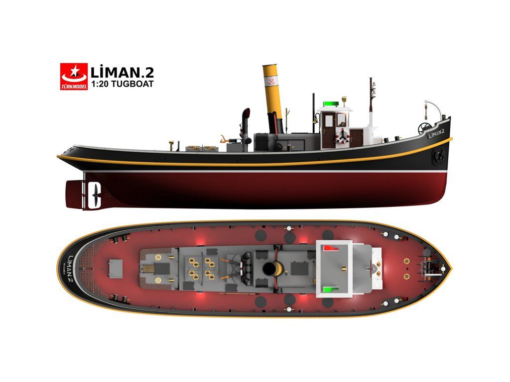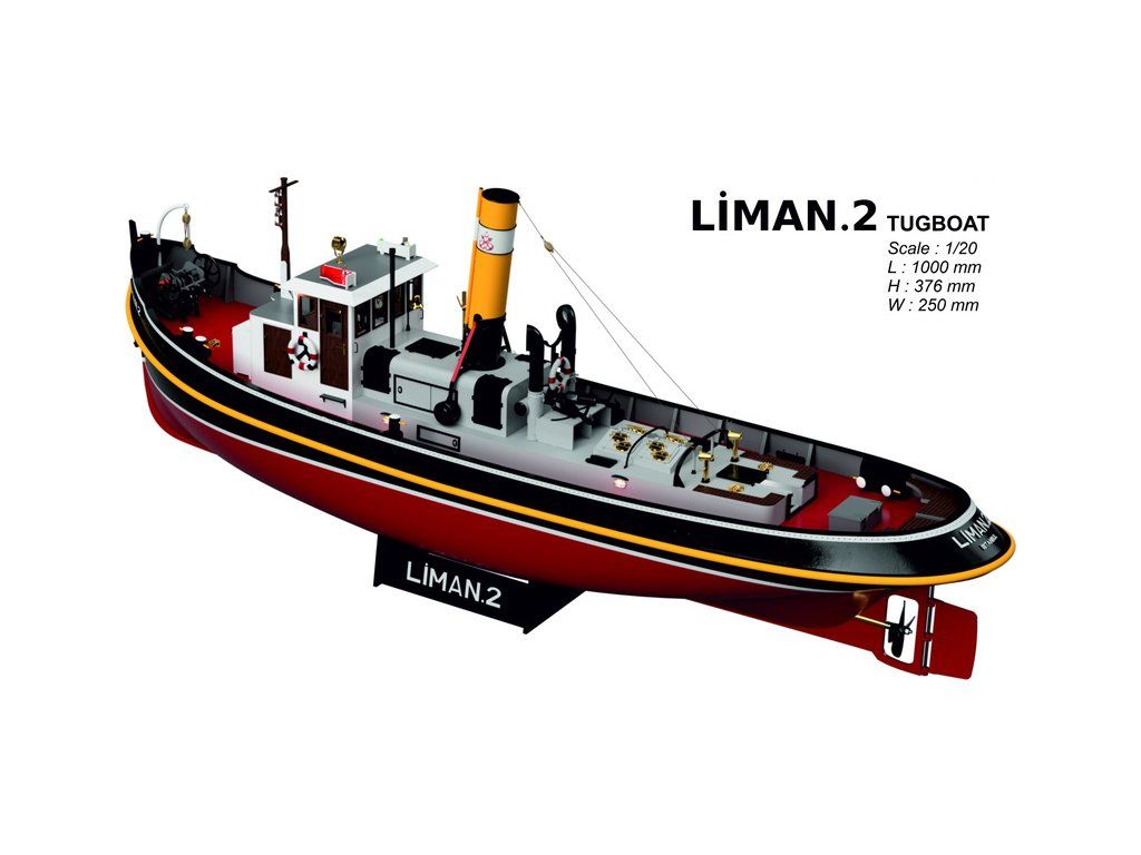 Stavebnice modelu přístavního remorkéru Liman 2. Pro pokročilé modeláře. Dřevěný trup z laserem vyřezaných dílů, doplněné o detaily z 3D tisku, včetně vybaveného interiéru. Model je navržen jako statický, ale lze jej rozšířit o RC vybavení, pro plavbu.