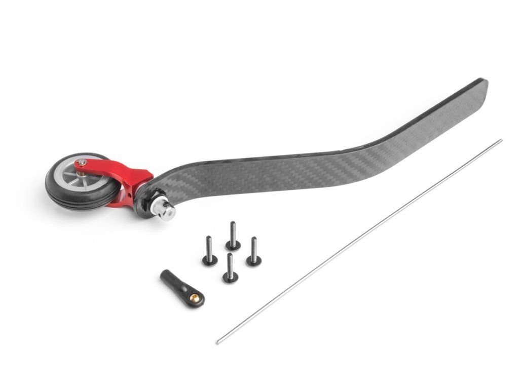 Uhlíková ostruha s CNC hliníkovým uložením kola. Hmotnost 75g. Celkové rozměry uhlíkové části: Délka 210mm, Šířka 23mm.