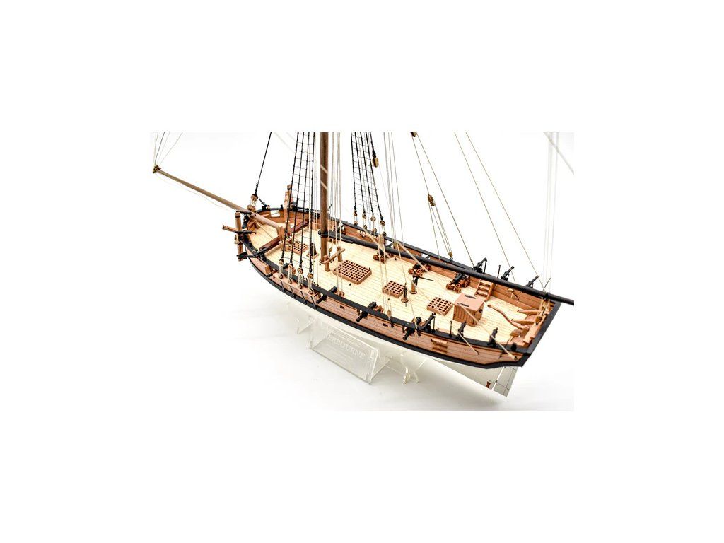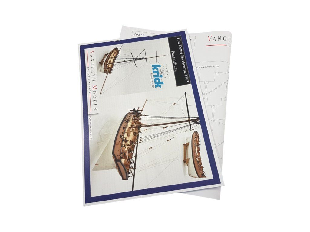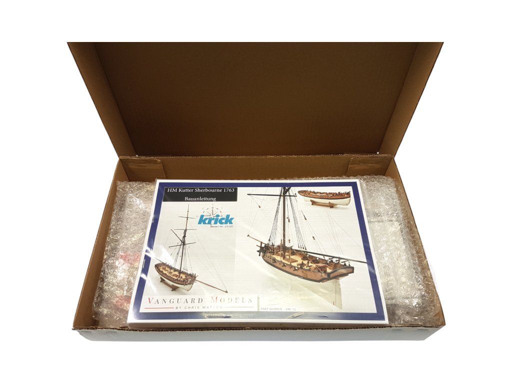 Stavebnice neplovoucího modelu lodi Vanguard Models HM Sherbourne z roku 1763, v měřítku 1:64. V balení jsou díly pro stavbu - laserem řezané díly, lišty, mosazné fotolepy, 3D tištěné díly, lanoví a další. Stavební výkresy a návod. Předlohou modelu je ozbrojený kutr Královského námořnictva.