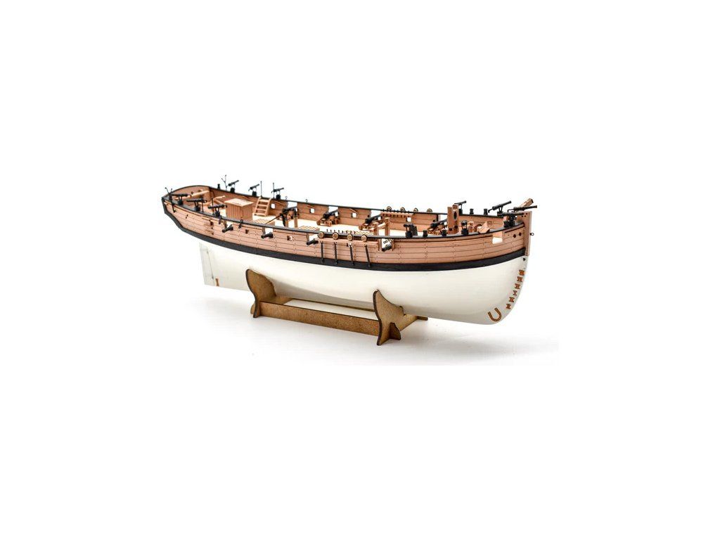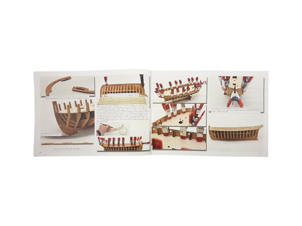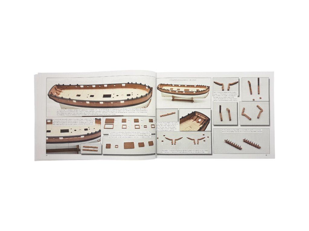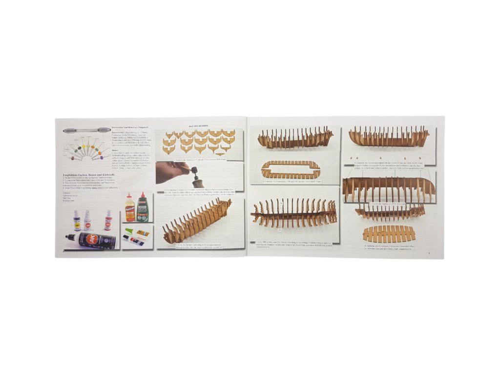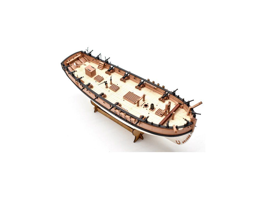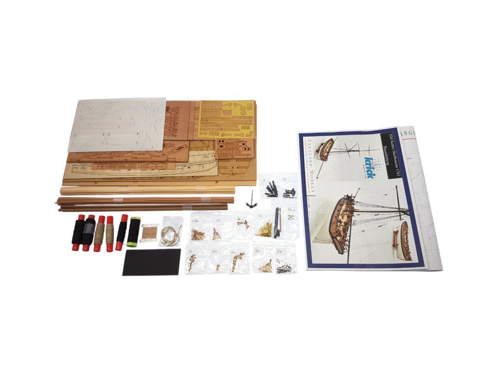 Balení obsahuje laserem řezané a gravírované díly vyrobené z MDF a hruškového dřeva, laserem gravírovaná a řezaná deska z lipového dřeva s detaily hřebíků, 2 mosazné destičky s fotoleptanými díly, 3D tištěné díly s vysokým rozlišením, dvouplaňkový trup je z lipového a hruškového dřeva (druhá obšívka), kulaté lišty z ořechového dřeva pro stěženě, ráhna a výložník. Několik velikostí černě a přírodně zbarvené nitě pro lanoví, stejně jako všechny potřebné součásti. Komplexní, barevný návod k použití spolu s 19 plánky obsahujícími všechny výkresy včetně stěžnů a lanoví - manuál EN.