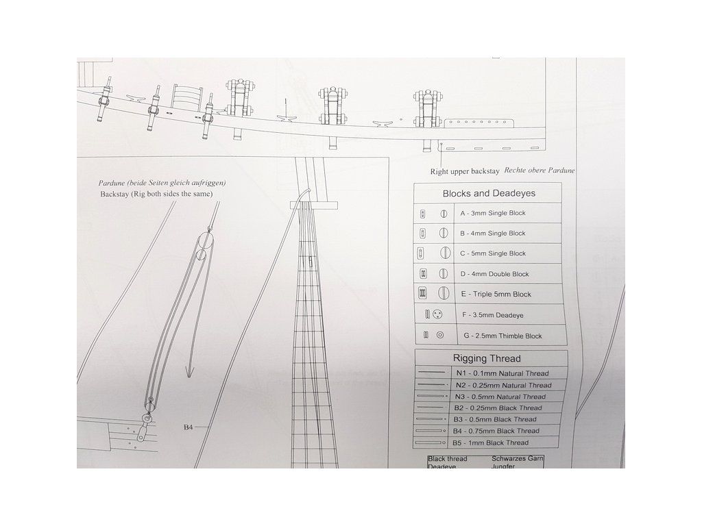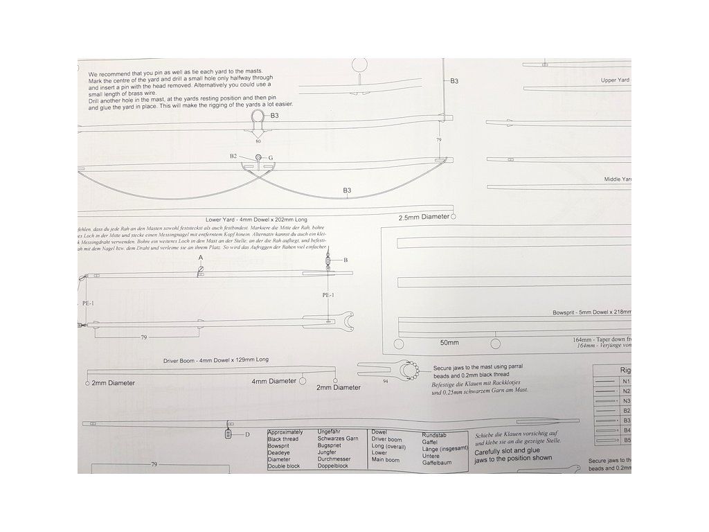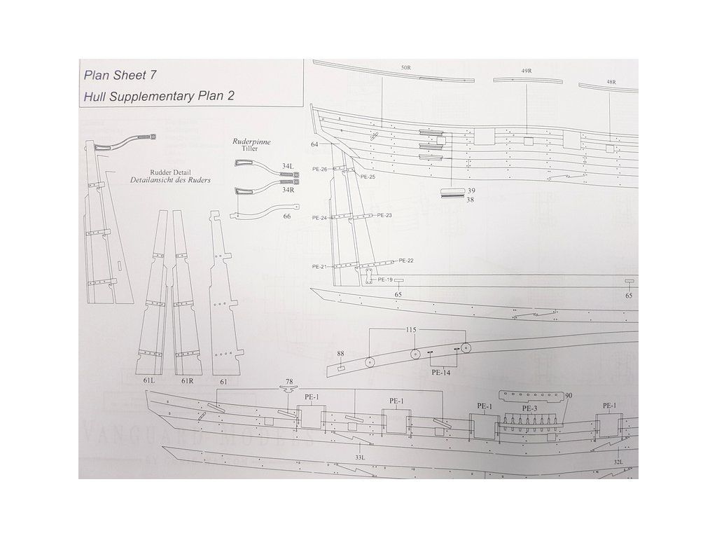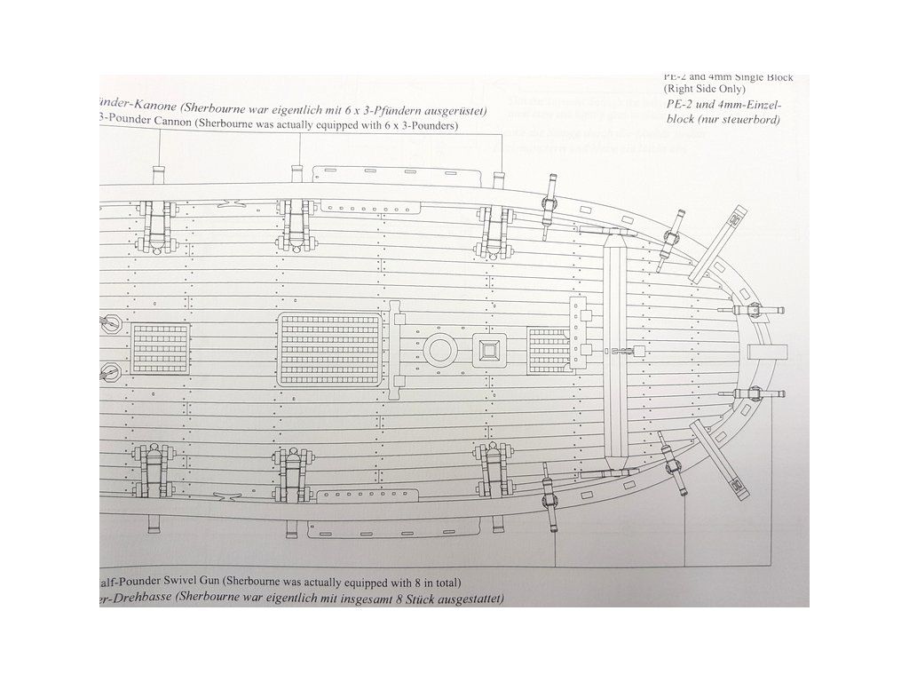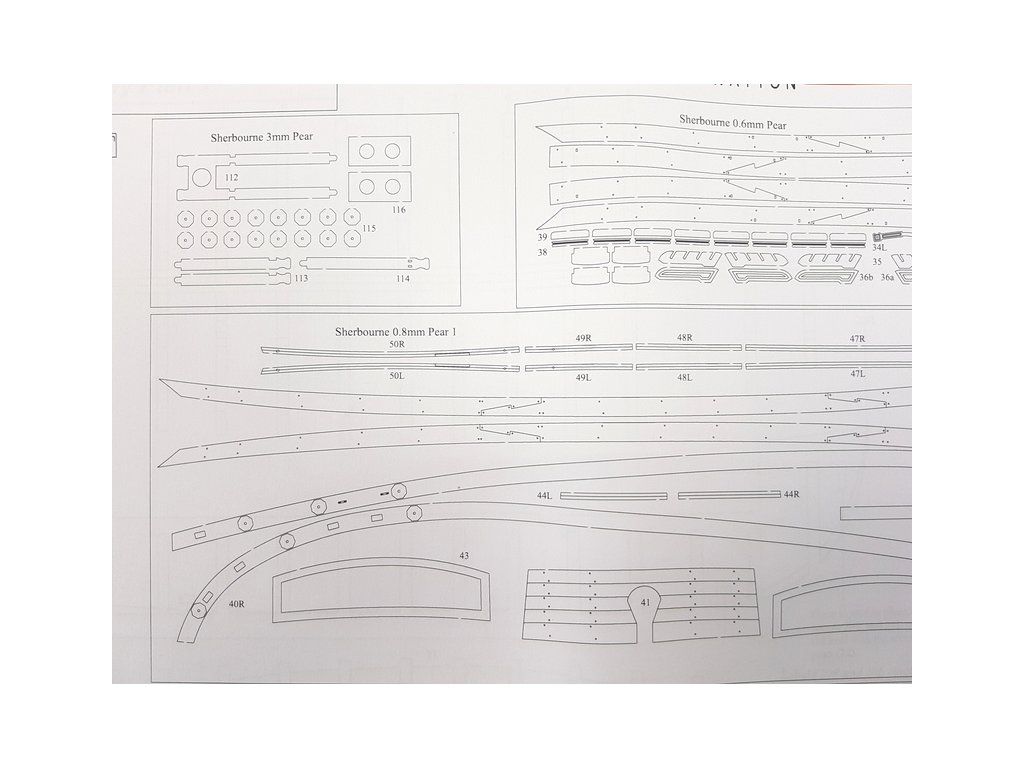 Balení obsahuje laserem řezané a gravírované díly vyrobené z MDF a hruškového dřeva, laserem gravírovaná a řezaná deska z lipového dřeva s detaily hřebíků, 2 mosazné destičky s fotoleptanými díly, 3D tištěné díly s vysokým rozlišením, dvouplaňkový trup je z lipového a hruškového dřeva (druhá obšívka), kulaté lišty z ořechového dřeva pro stěženě, ráhna a výložník. Několik velikostí černě a přírodně zbarvené nitě pro lanoví, stejně jako všechny potřebné součásti. Komplexní, barevný návod k použití spolu s 19 plánky obsahujícími všechny výkresy včetně stěžnů a lanoví - manuál EN.