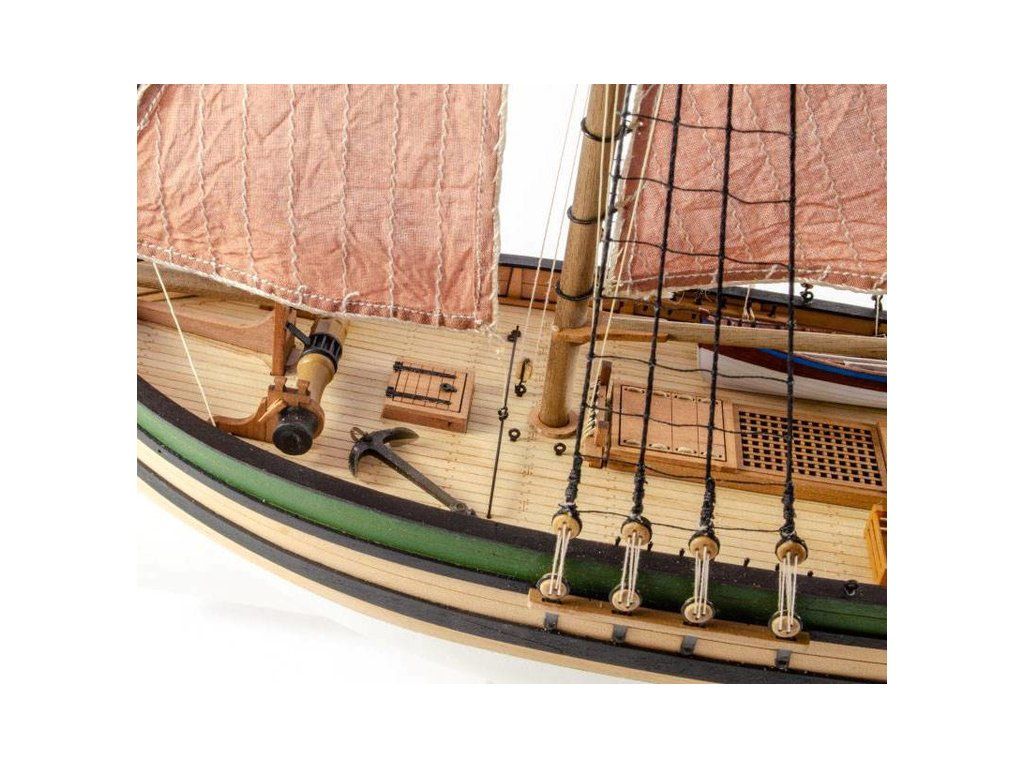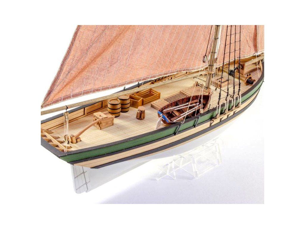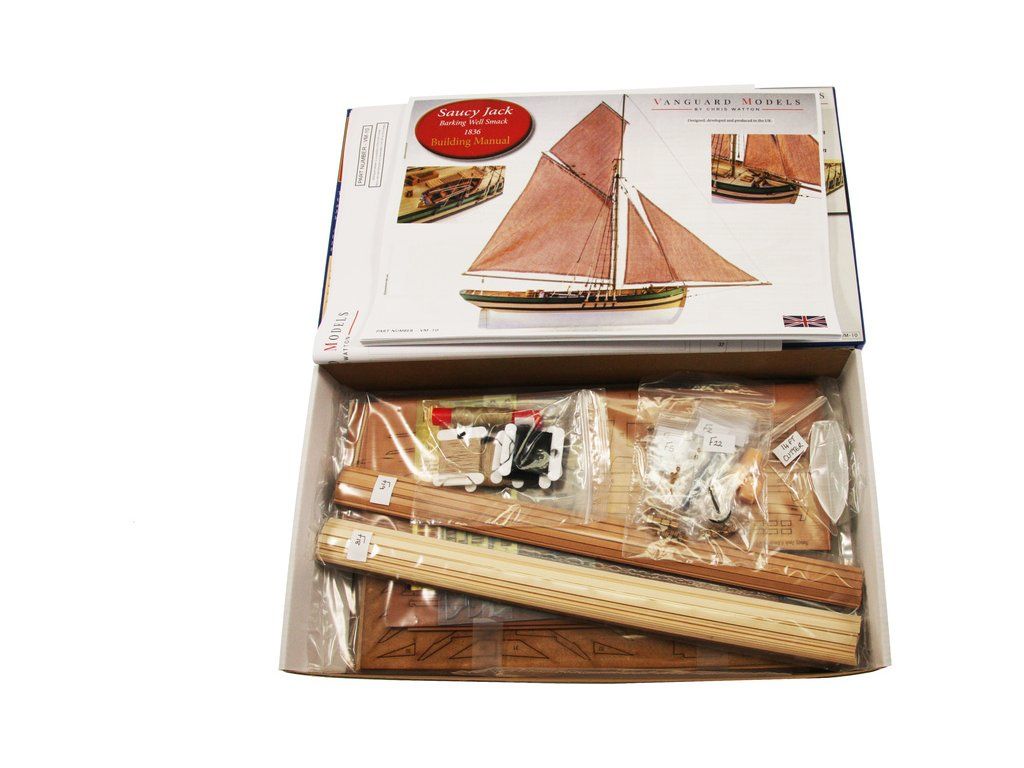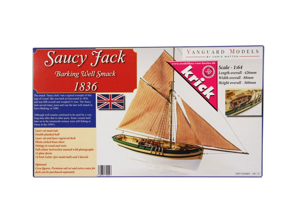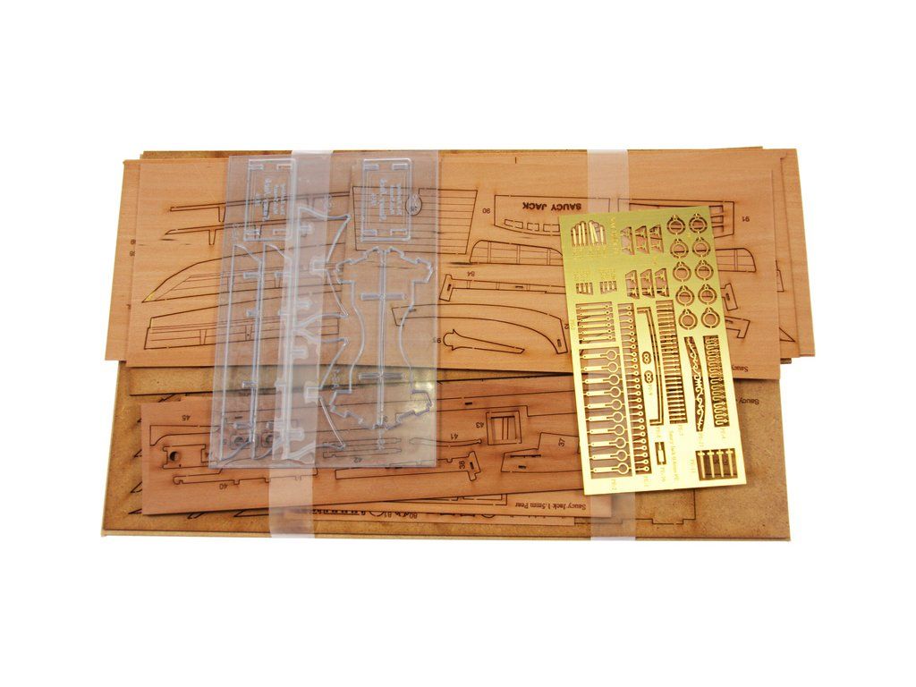 Stavebnice modelu lodi Saucy Jack v měřítku 1:64. Délka modelu lodi je 425 mm, stavba převážně ze dřeva s drobnými doplňky, součástí je stavební plán. Laserem řezané a 3D tištěné díly.