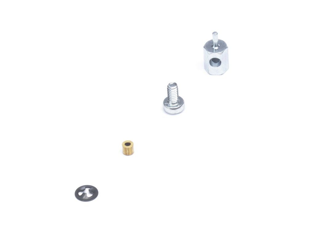 Určeno pro použití s mikro servy a modely poháněnými elekromotorem. Upevňovací hřídel o průměru 1mm je vhodná pro všechny druhy pák na mikro servech. Koncovka je použitelná i s pákou na servech standartní velikosti. Stačí nasunout mosazné pouzdro na upevňovací hřídel a zvětšit otvor v servo páce na průměr 1,6-2mm. Šestiúhelníkový tvar koncovky je snadné uchytit do kleští při utahování šroubku. Použitelné pro táhla o průměru 0,5 až 2mm. Včetně pojistky hřídele z pružinové oceli pro upevnění k servopáce. Vyrobeno z poniklované oceli.