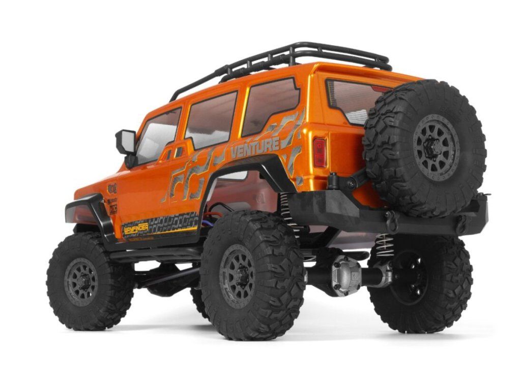 Průhledná okna zajišťují realistický vzhled a dodávají modelu další vrstvu autenticity. Díky přednímu a zadnímu nárazníku, zrcátkům, funkčnímu střešnímu nosiči a výklopnému držáku rezervního kola poskytuje Venture autentický zážitek z jízdy v terénu.