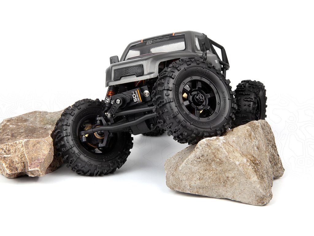 V kombinaci s detailní karoserií Ridgeline Half Cab a pneumatikami ROVER 1,3" Pink Dot je připraven čelit technicky náročnému terénu ihned po vybalení. Bezsponková karoserie z polykarbonátu je předem lakovaná v barvě matné zelené nebo gunmetalové šedé podle vašeho výběru a má průhledná okna, detailní mřížku chladiče, funkční zrcátka a trubkový rám se zadní nádrží.