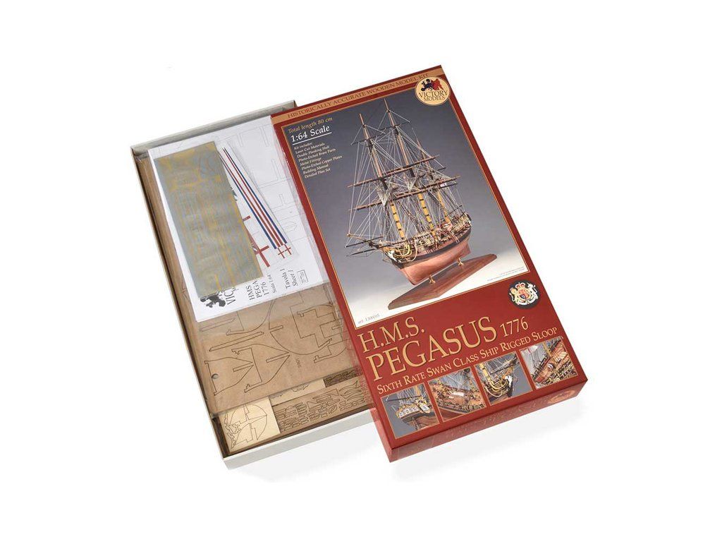 VICTORY MODELS H.M.S Pegasus 1776 1:64 kit. H.M.S. Pegasus byla sesterská loď H.M.S. Obě patřily do takzvané "třídy SWAN", z níž bylo postaveno celkem 25 lodí v letech 1766-1780.