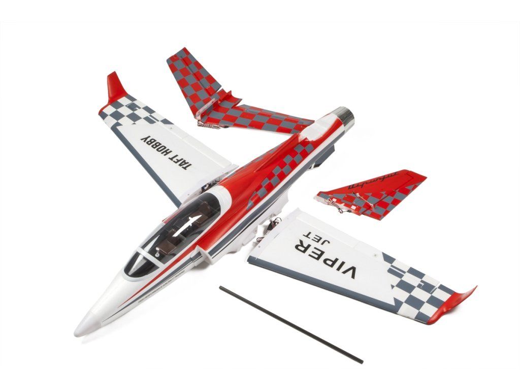 Sportovní „tryskáč“ Viper původně vznikl v 90. letech minulého století jako amatérský stroj poháněný tlačným pístovým motorem s mnohalistou vrtulí. Protože ale tvůrcům pořád chyběl tah, dospělo se v roce 2005 po několika přestavbách a zkouškách různých proudových motorů k provedení poháněnému motorem General Electric J85, se kterým byli už bratři Hanchetteové spokojeni. Aby ne, J85 pohání třeba lehký stíhací Northrop F-5 nebo bitevní Cessnu A-37 Dragonfly! Pokud nemáte cca 650 000 dolarů na zakoupení „dospělé“ stavebnice a volných 3500 hodin na stavbu, můžete to zkusit s naším ARF setem, jenž budete mít k letu připravený za dobu, kterou zabere nabití pohonného akumulátoru! Malý Viper sice nebude nadzvukový, ale na nějakých 150-170 km/h to vytáhnete bez problémů.