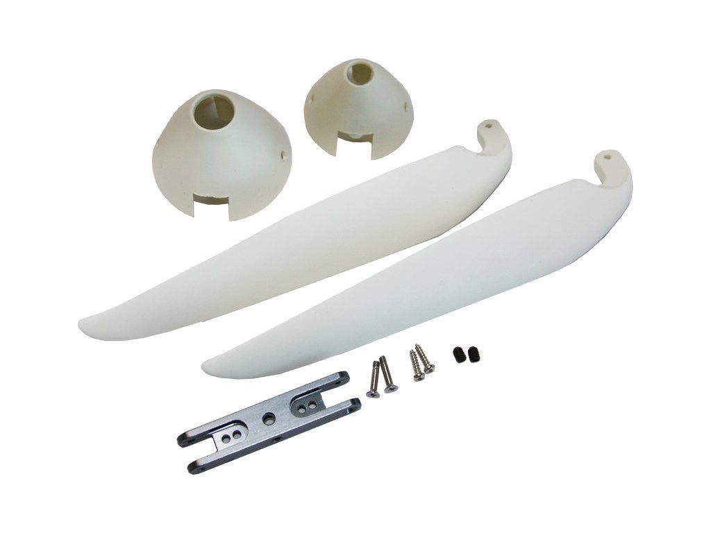 Vrtule sklopná pro RC modely větroňů, rozměr vrtule 12 x 8. Obsaženy jsou 2ks bílé kužely o průměru 40mm a 32mm. Hliníkový trámec má průřez 7x10mm, rozteč šroubů vrtule 42mm, otvor pro hřídel motoru 3mm.