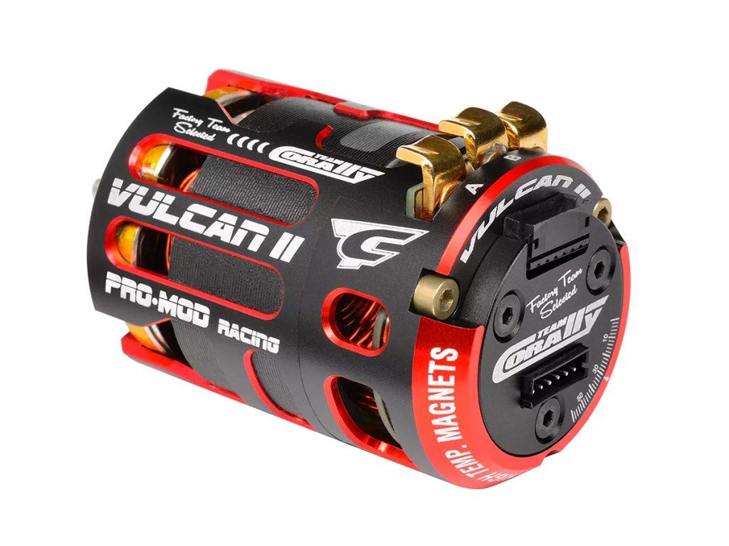 TEAM CORALLY VULCAN 2 střídavý motor. Provozní napětí: 1S-2S, délka samotného těla 52,0mm, průměr: 35,8mm, váha: 165g, otáčky na 1Volt: 3.600 o/min, hřídel 3,17mm, Výkon: 260W, Rotor: 12,3mm. EFRA, IFMAR, ROAR, BRCA, DMC regulérníDoplňkové parametry